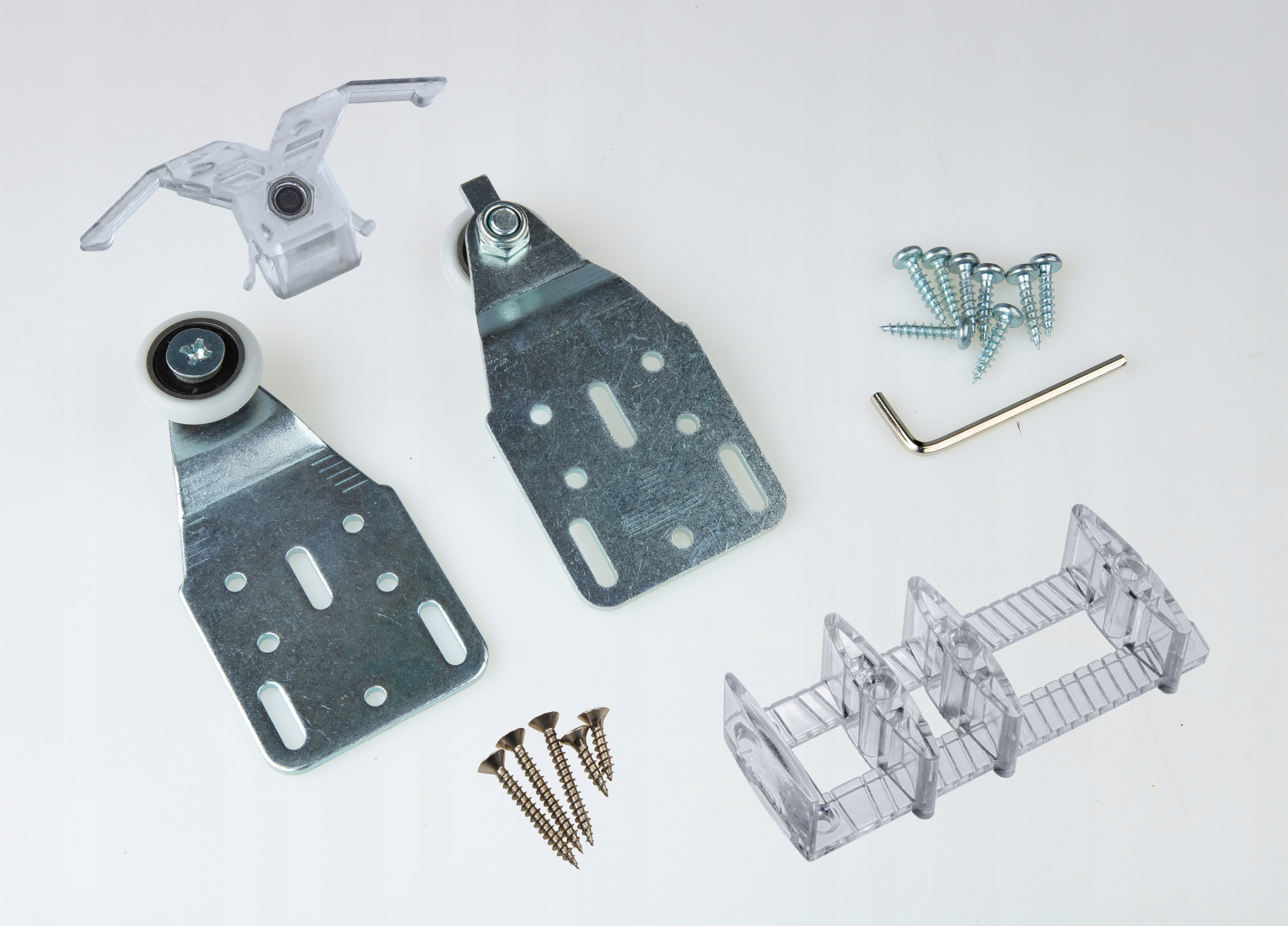 - łożyskowane wózki uniwersalne ze zintegrowanym aktywatorem domykacza ( mogą być użyte zarówno jako wewnętrzne jak i zewnętrzne) – 2szt