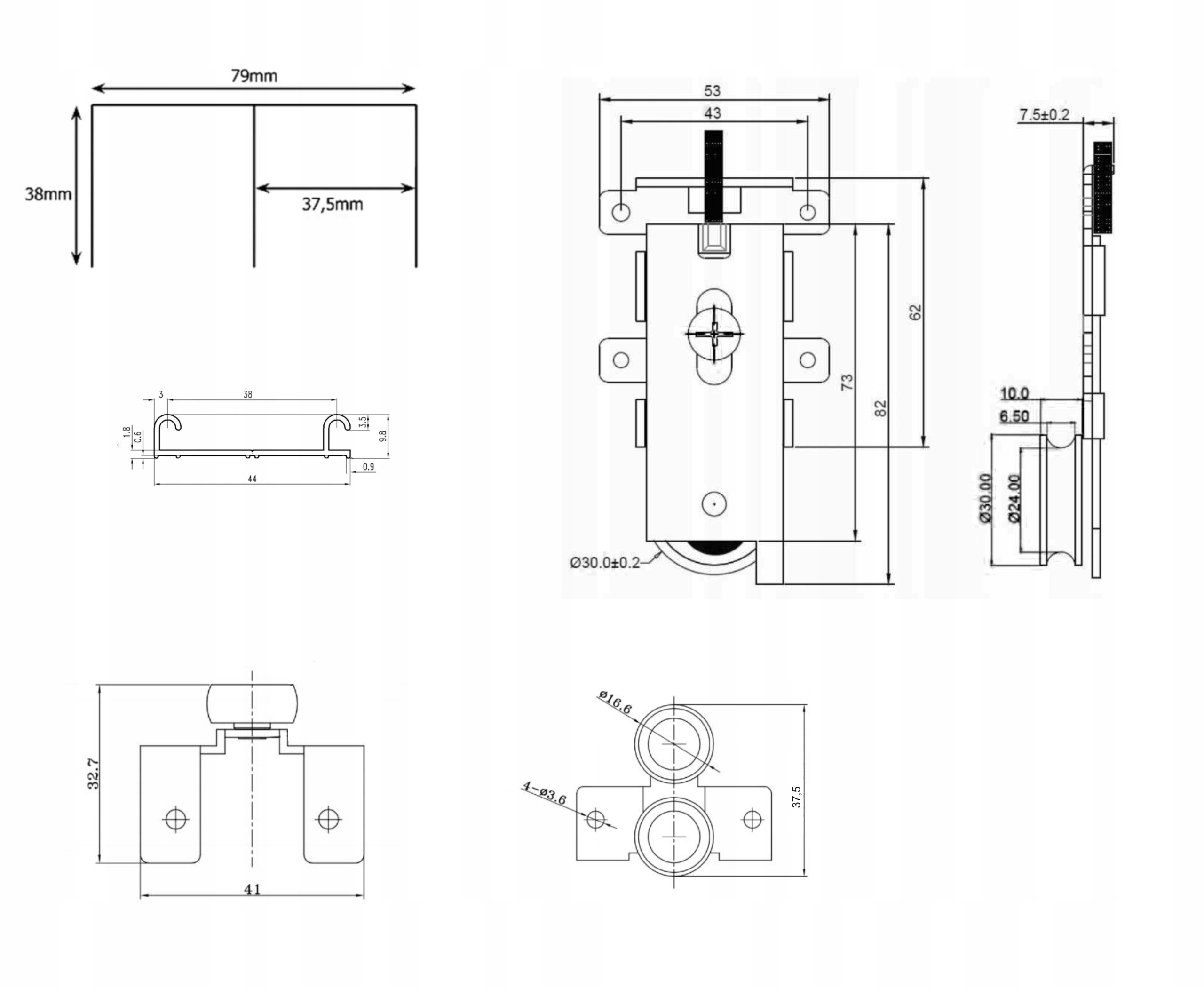 - kpl. okuć dodatkowego skrzydła ( wózki rączki kątownik szczotka, klips zabezpieczający, stoper)