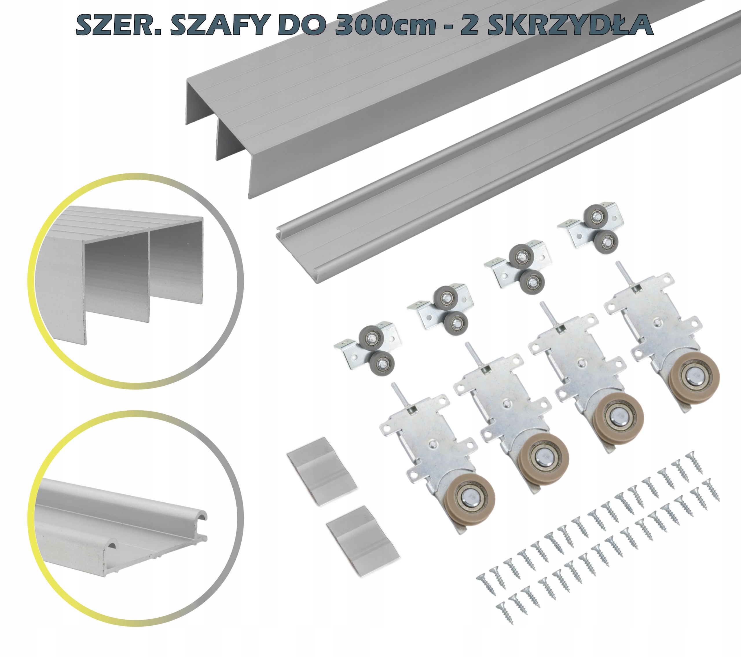 Przedmiotem aukcji jest system przesuwny do szafy dwuskrzydłowej szerokości do 300cm w kolorze srebrnym