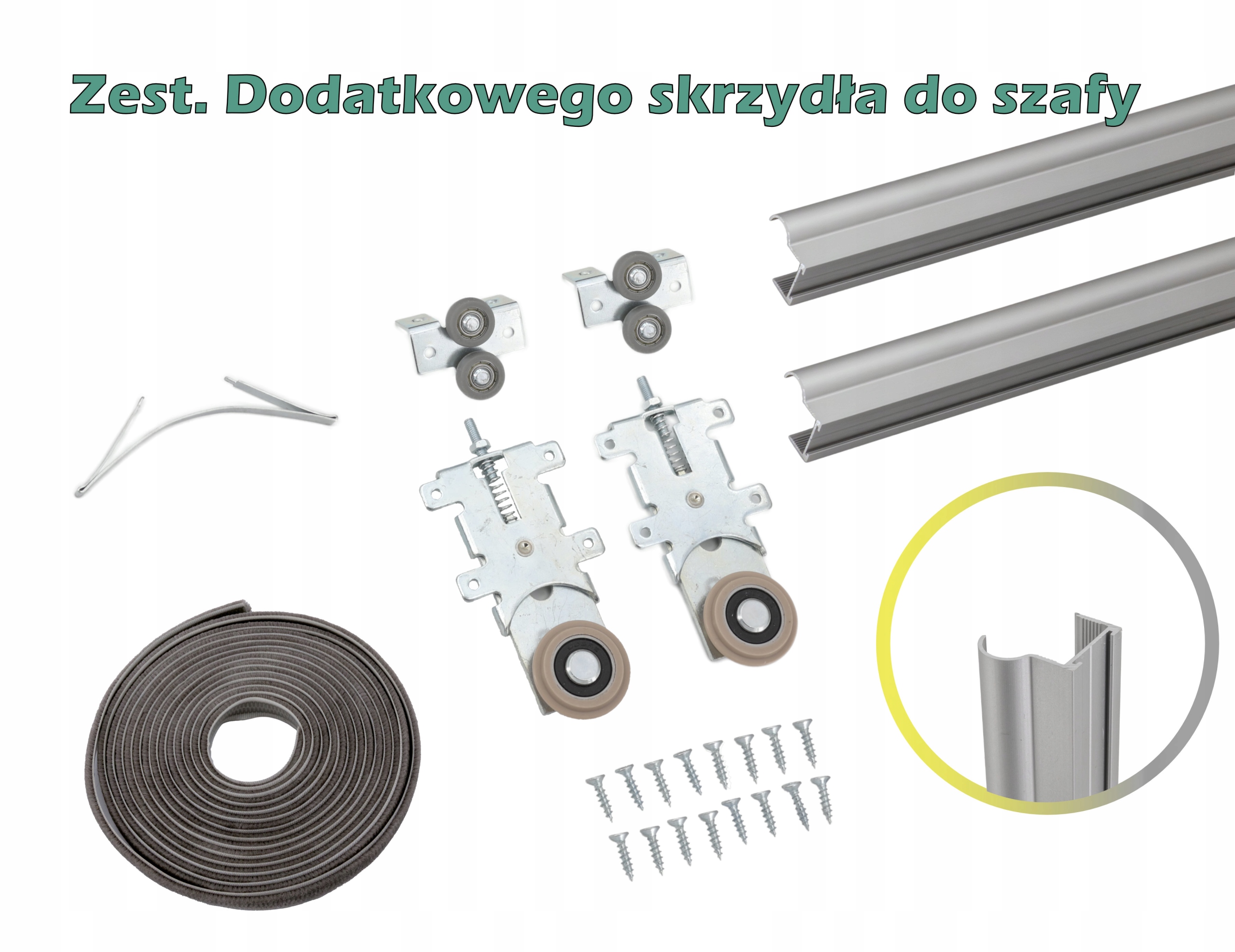 Przedmiotem aukcji jest zestaw elementów dodatkowego skrzydła szafy przesuwnej RAM V w kolorze srebrnym