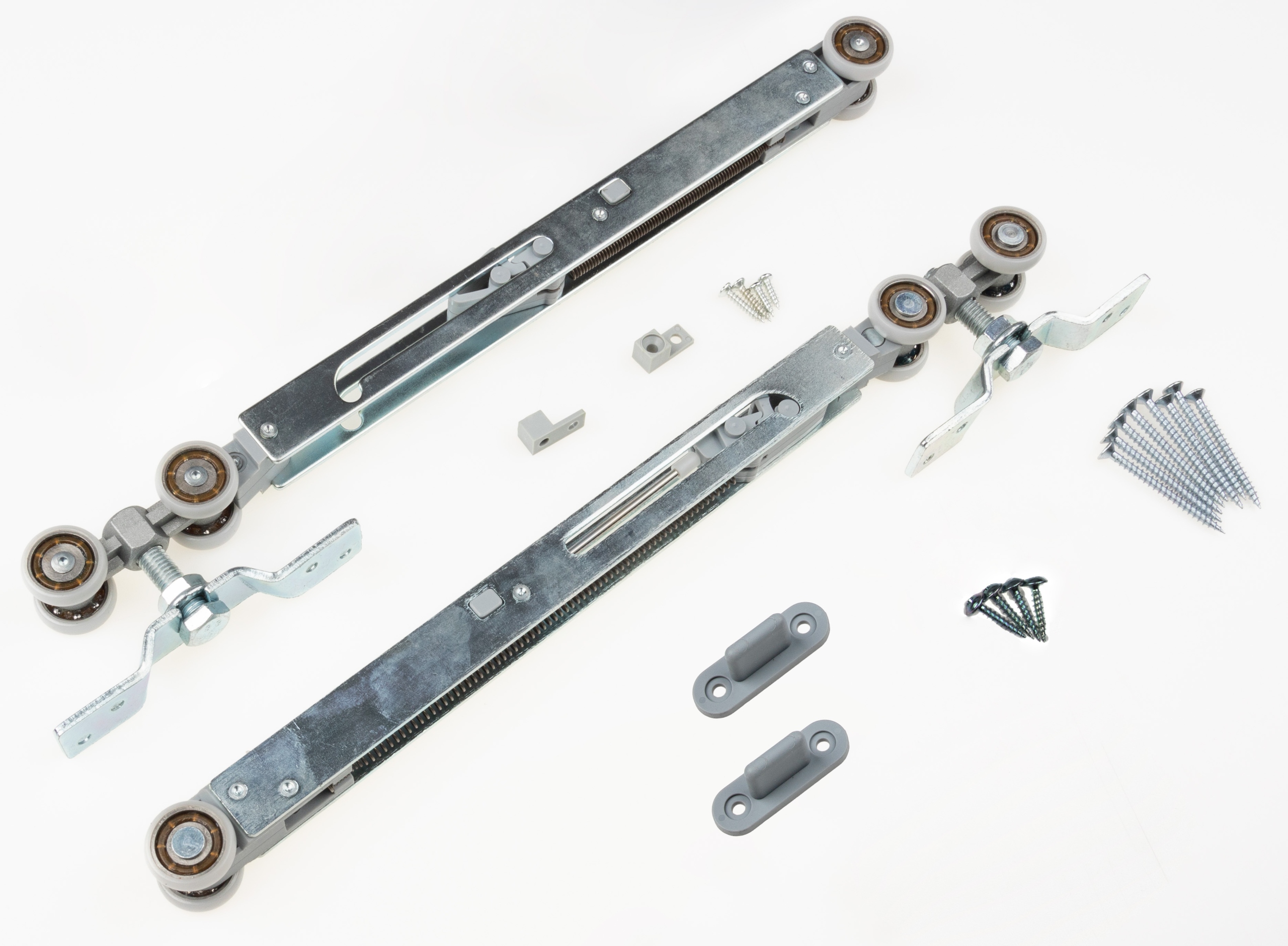Komplet złączek IRON na dodatkowe skrzydło zapewnia możliwość montażu dodatkowego skrzydła jako rozwiązanie dla sytuacji w której ze względu na brak miejsca po obu stronach otworu drzwiowego na przesunięcie całego skrzydła w jedną stronę, musimy podzielić skrzydło na dwie połowy i przesuwać je w przeciwnych kierunkach .