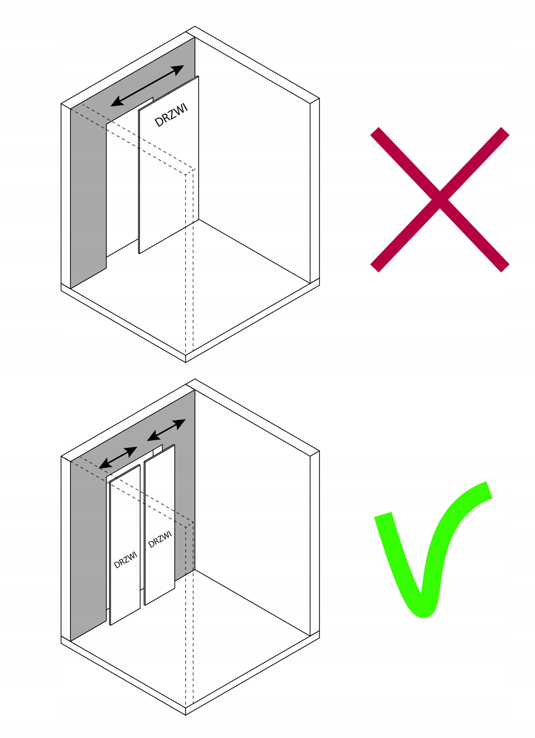 Komplet złączek IRON na dodatkowe skrzydło zapewnia możliwość montażu dodatkowego skrzydła jako rozwiązanie dla sytuacji w której ze względu na brak miejsca po obu stronach otworu drzwiowego na przesunięcie całego skrzydła w jedną stronę, musimy podzielić skrzydło na dwie połowy i przesuwać je w przeciwnych kierunkach .