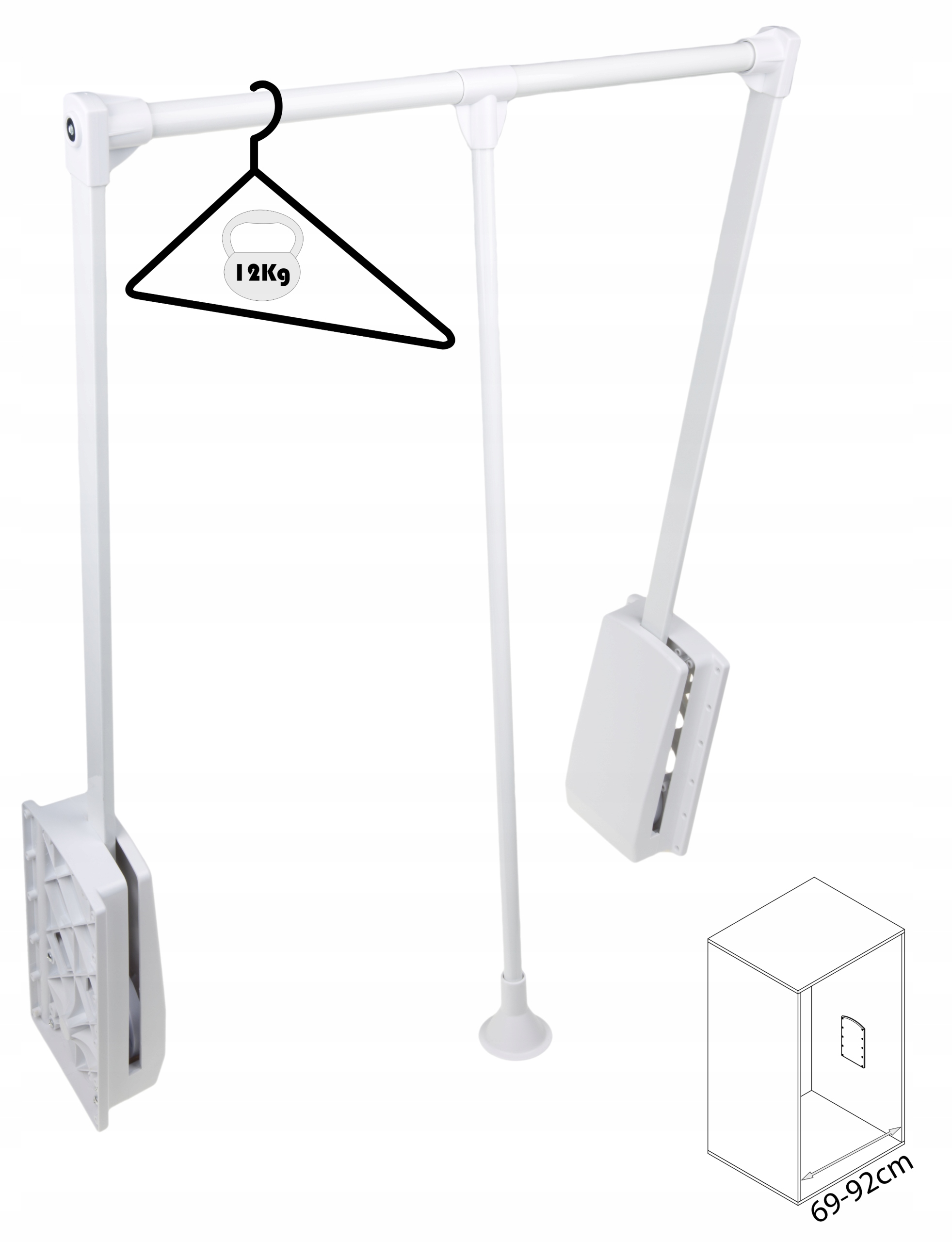 Przedmiotem aukcji jest pantograf do szafy zwany także drążkiem opuszczanym do szafy lub „windą do szafy” w kolorze białym