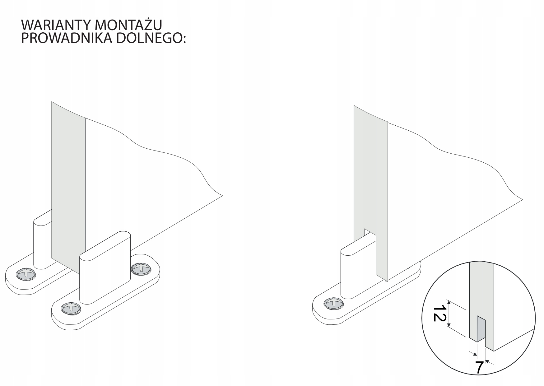 Prowadnik dolny do drzwi przesuwnych przejściowych, biały – 2szt