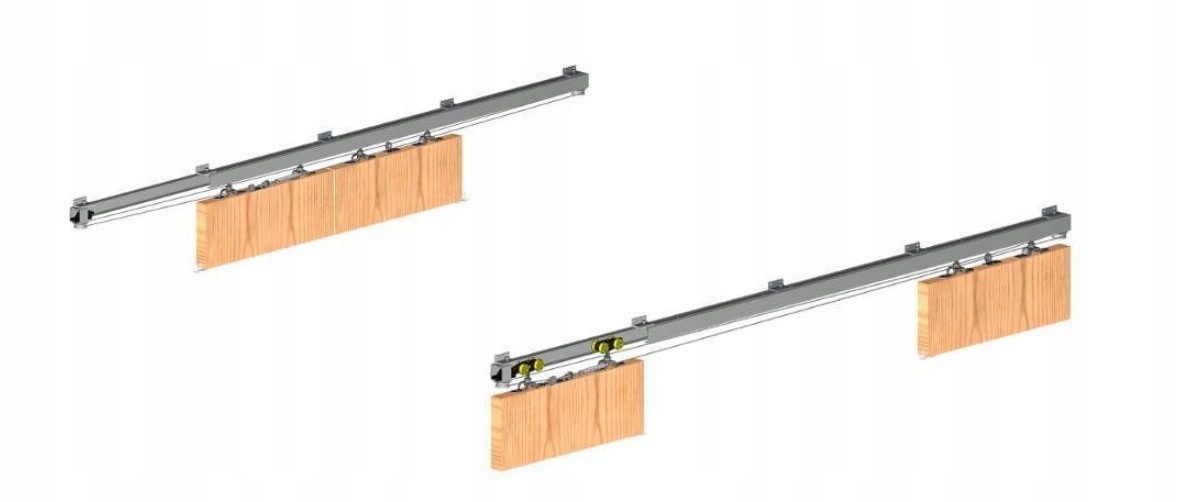Aby skompletować system do 2 sztuk drzwi z jednoczesnym przesuwem należy użyć: