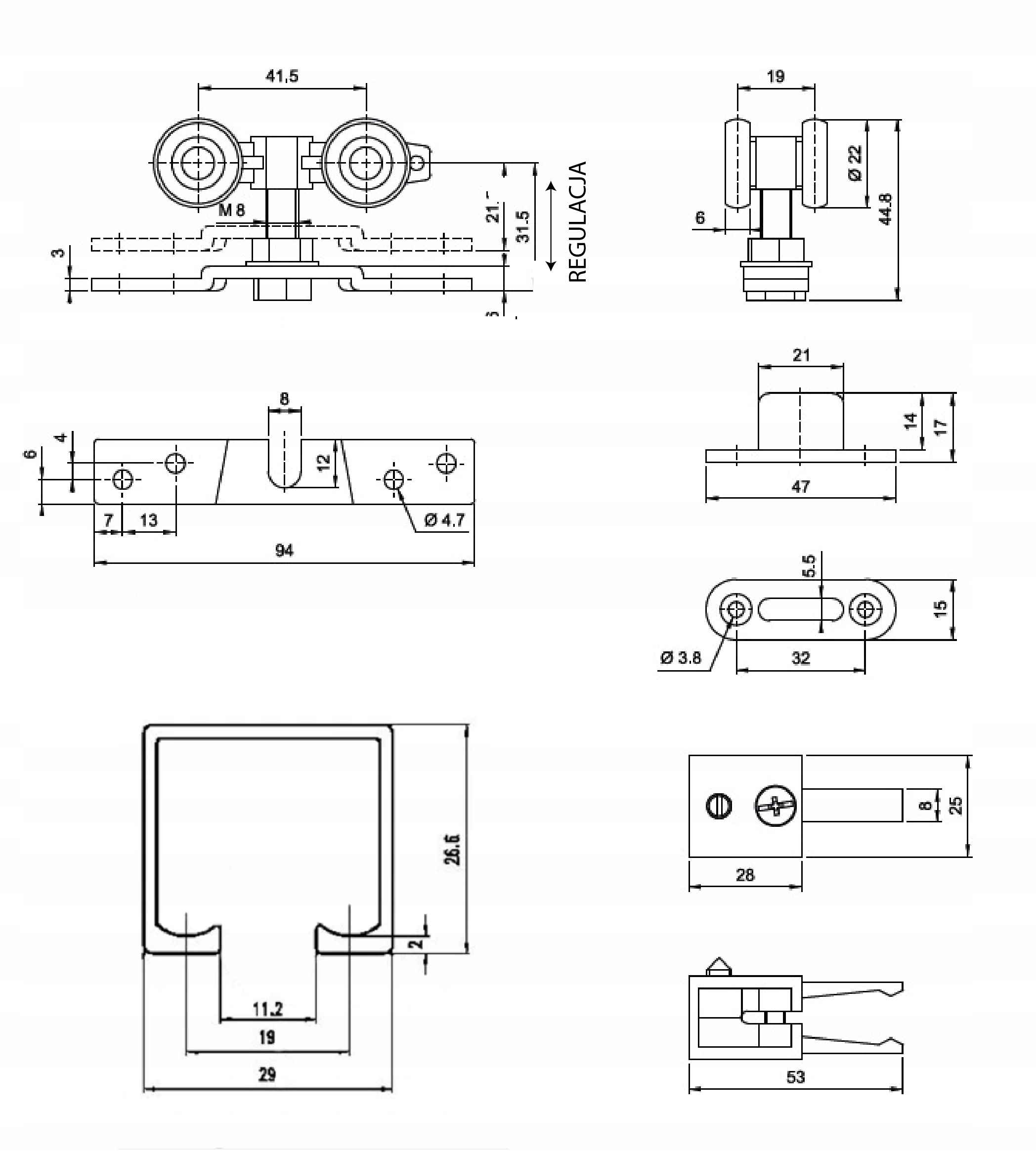 - wkręty mocujące wózki do skrzydła – 1kpl