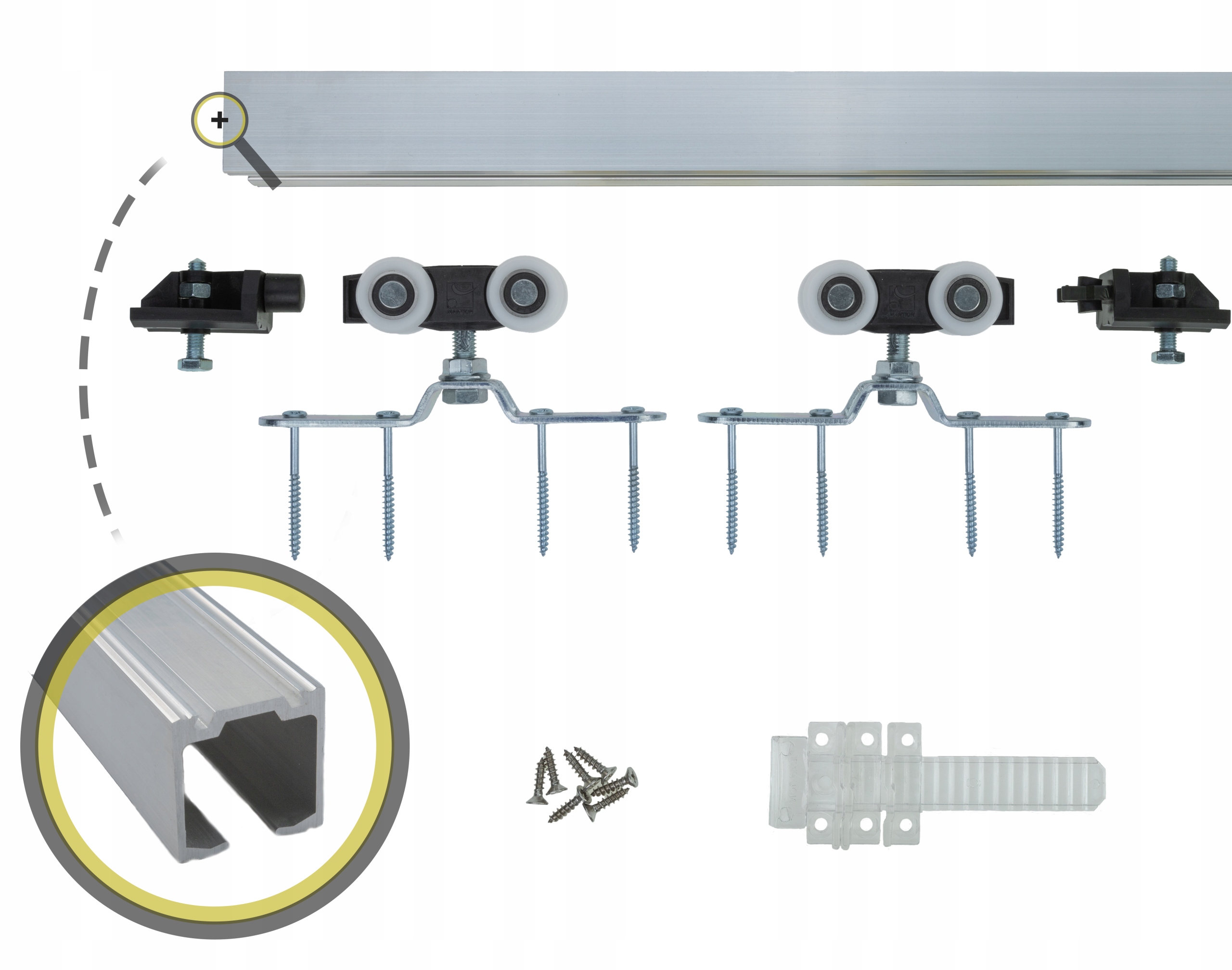 Każde z kół wózków jezdnych tego systemu wyposażone jest w odporne łożysko kulkowe gwarantujące wieloletnią cichą pracę systemu.