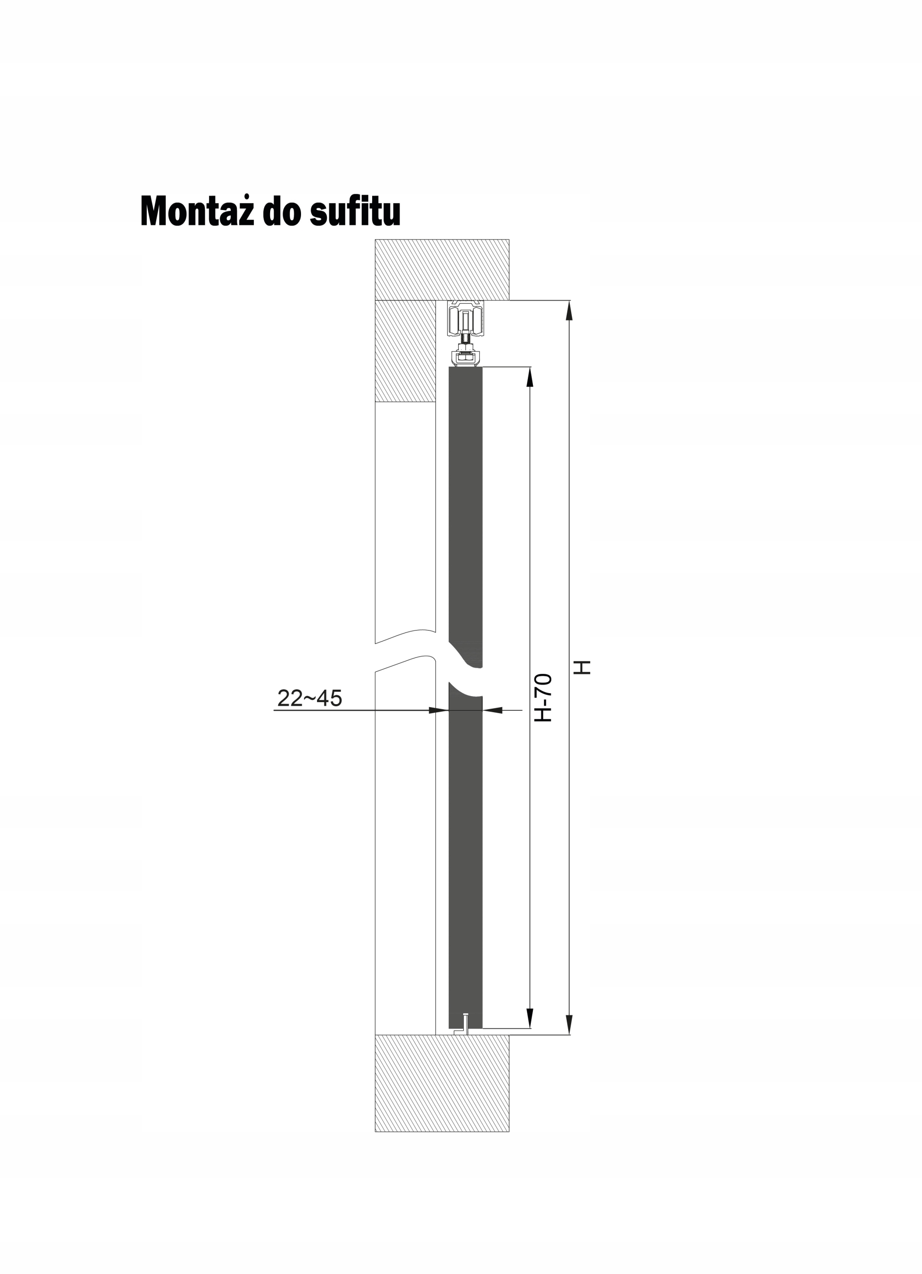 - KLAMRY ŚCIENNE 45mm – do montażu systemu do ściany, dla drzwi o grubości do 45mm