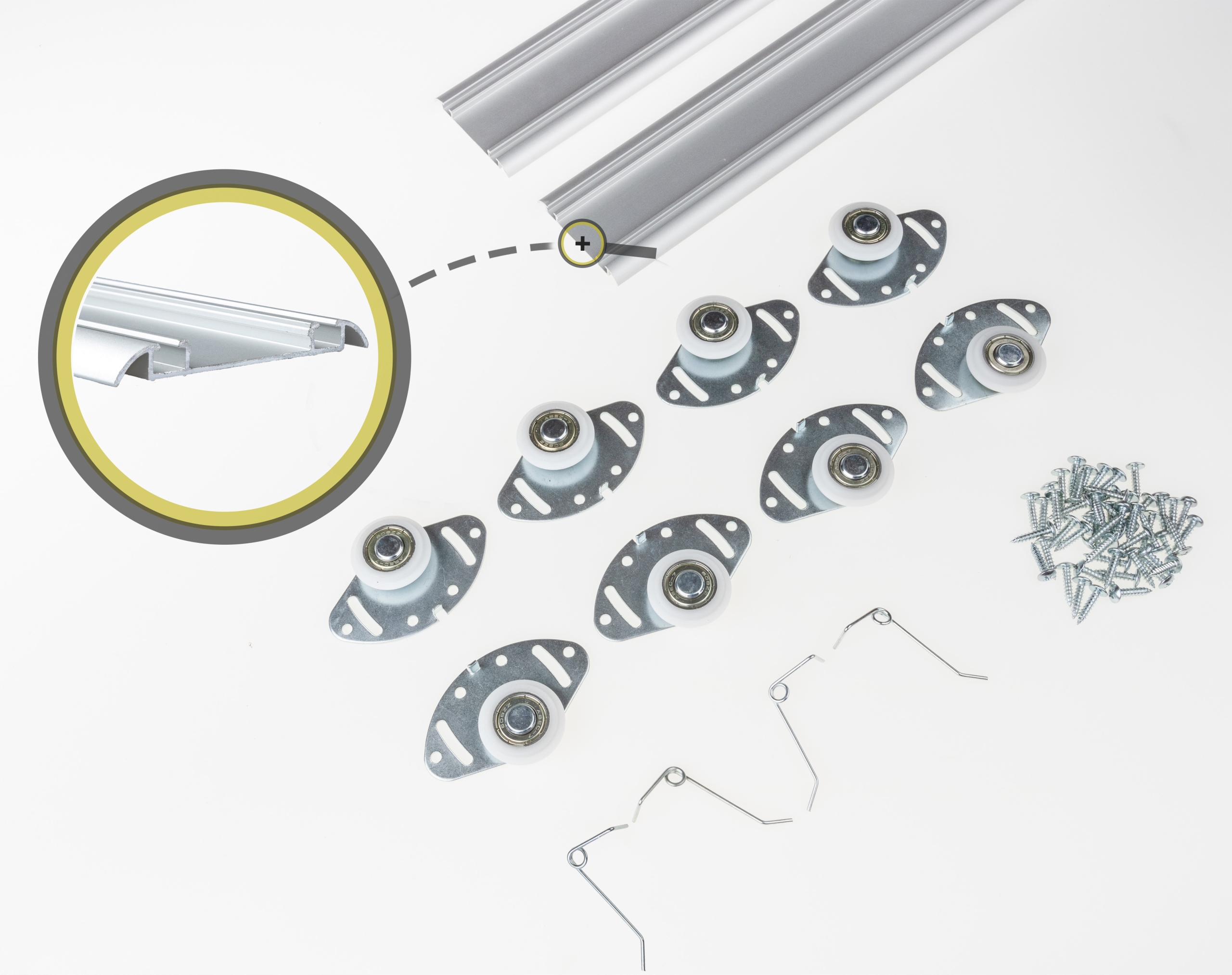 Rodzaj zastosowanych wózków jezdnych gwarantuje bardzo cichą pracę zestawu oraz jego płynne i delikatne przesuwanie.