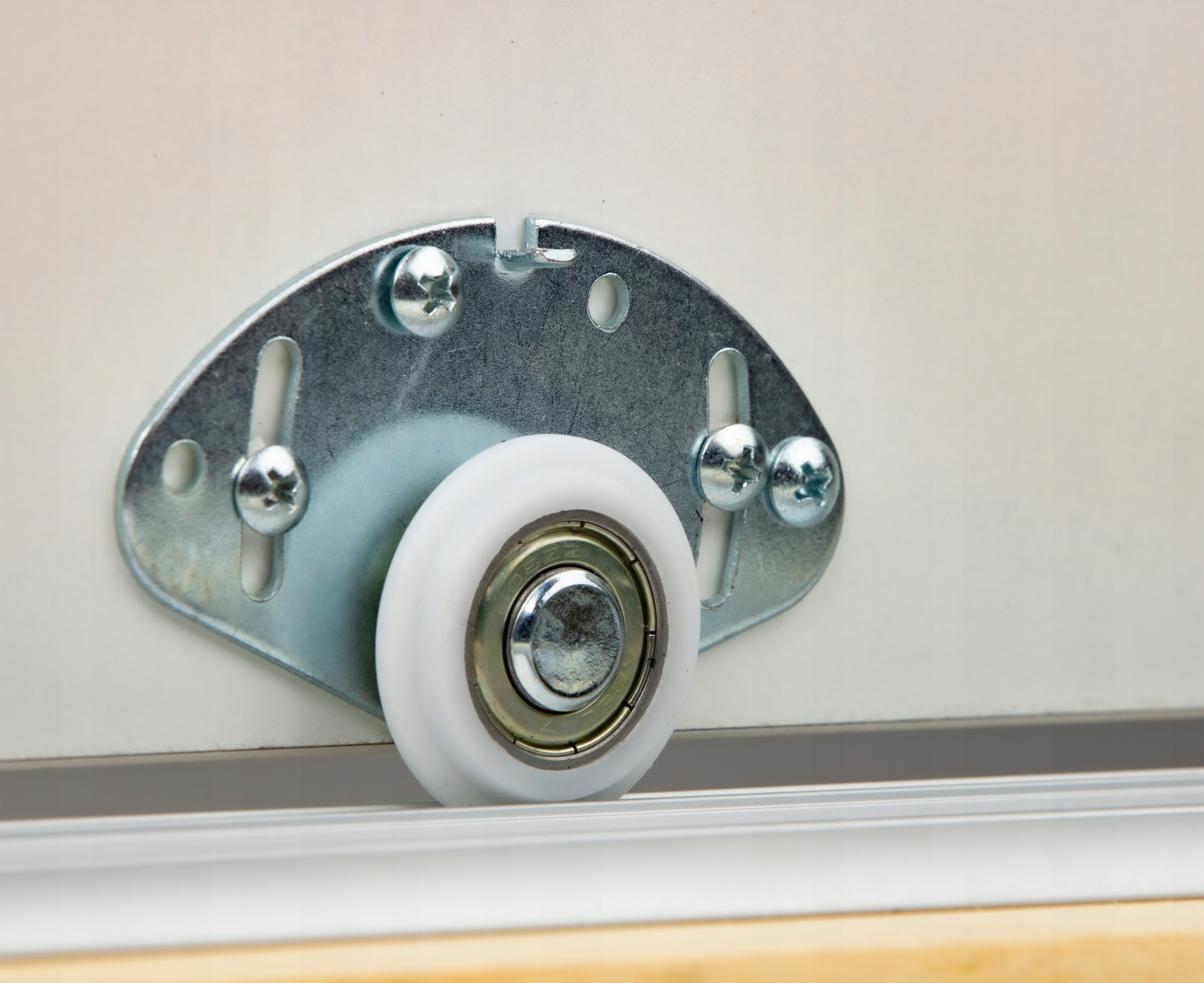 Dzięki takiemu rozwiązaniu unikamy zjawiska wypadnięcia skrzydła szafy szczególnie w przypadku nierówności sufitu gdyż wózek górny będzie samoczynnie adoptował się do zmieniającej wysokości światła szafy.