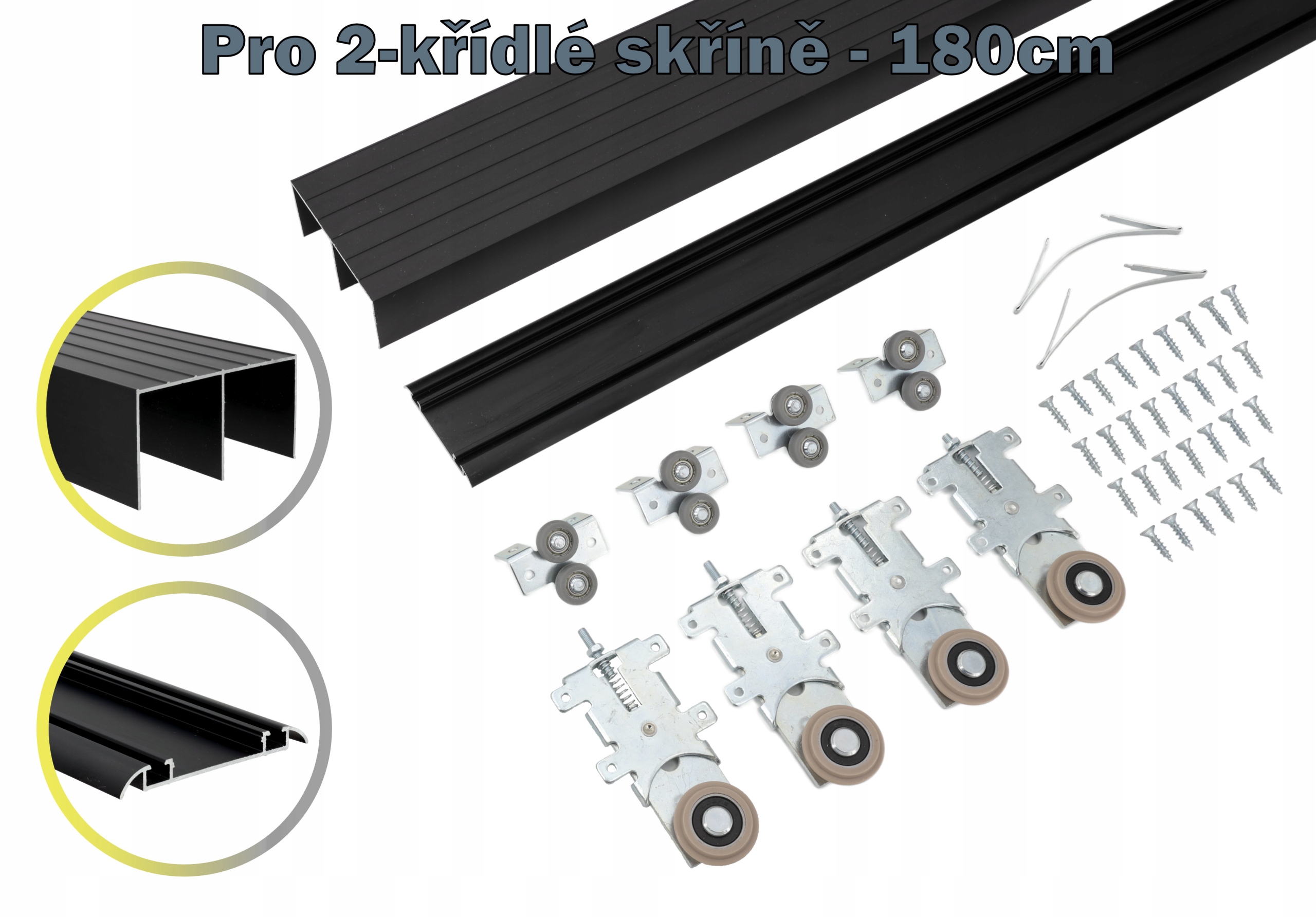 Przedmiotem aukcji jest system przesuwny do szafy dwuskrzydłowej szerokości do 180cm w kolorze czarnym.