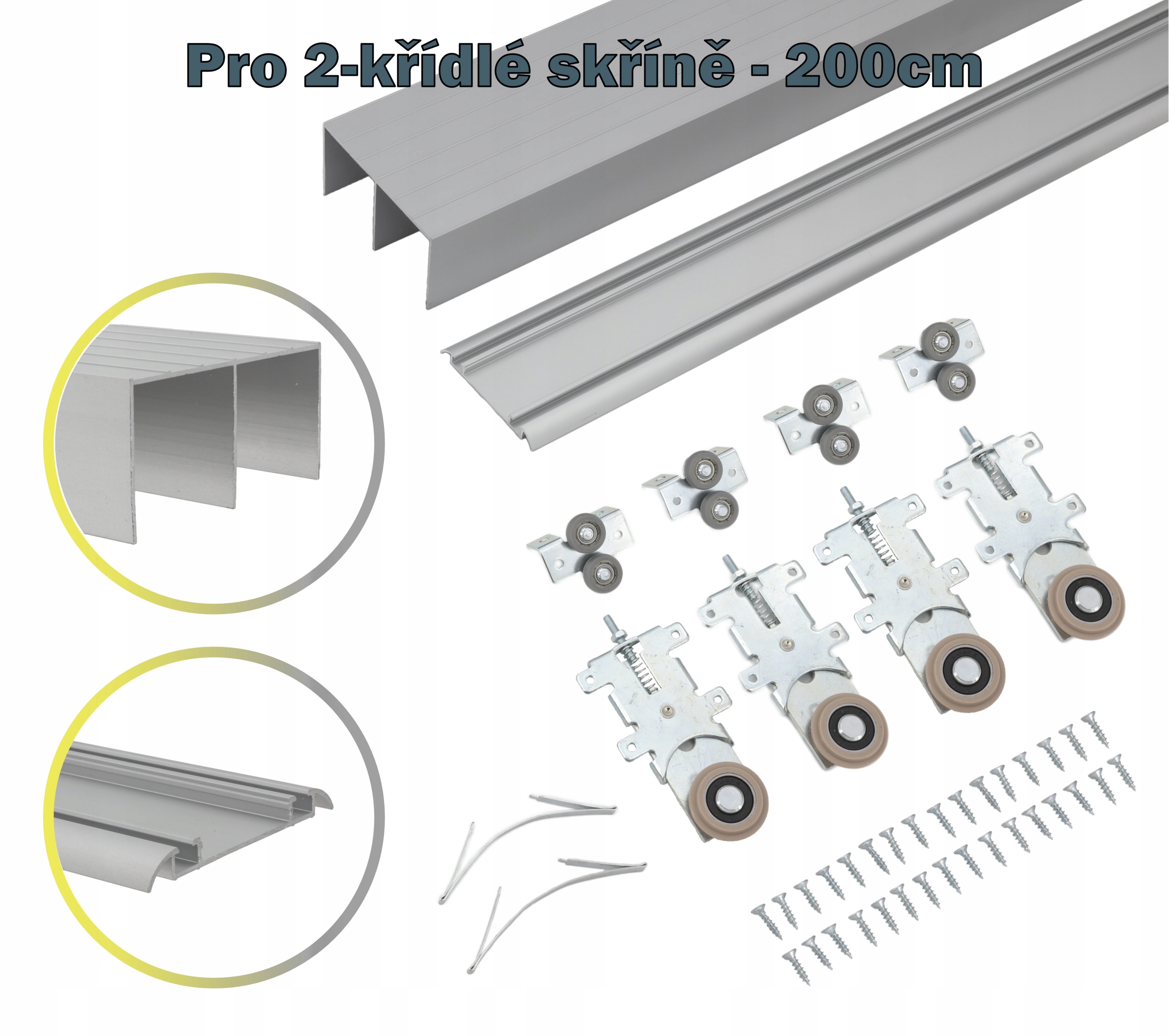 Przedmiotem aukcji jest system przesuwny do szafy dwuskrzydłowej szerokości do 200cm w kolorze SREBRNYM.
