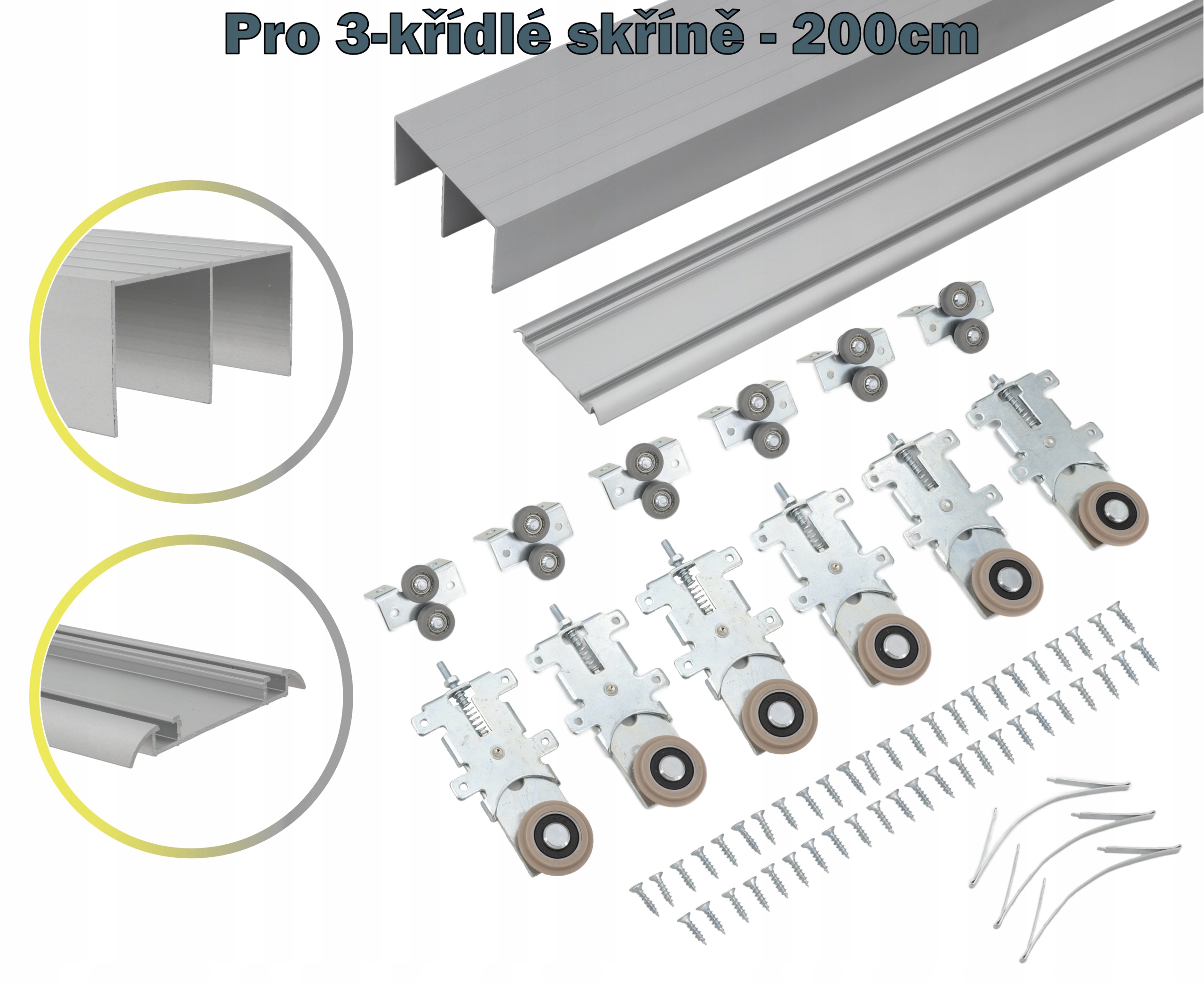 Przedmiotem aukcji jest system przesuwny do szafy trzyskrzydłowej szerokości do 200cm w kolorze SREBRNYM.
