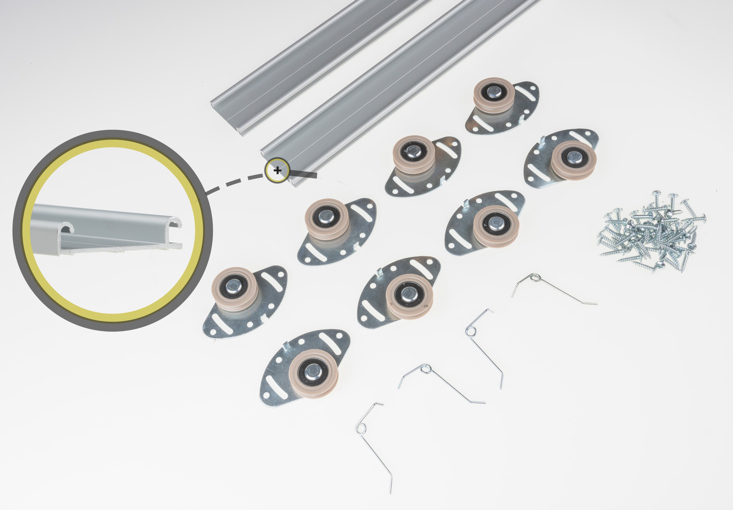 Cechują go łożyskowane wózki dolne, łożyskowane i dodatkowo amortyzowane sprężyną wózki górne oraz zespolony tor który ułatwia montaż systemu.
