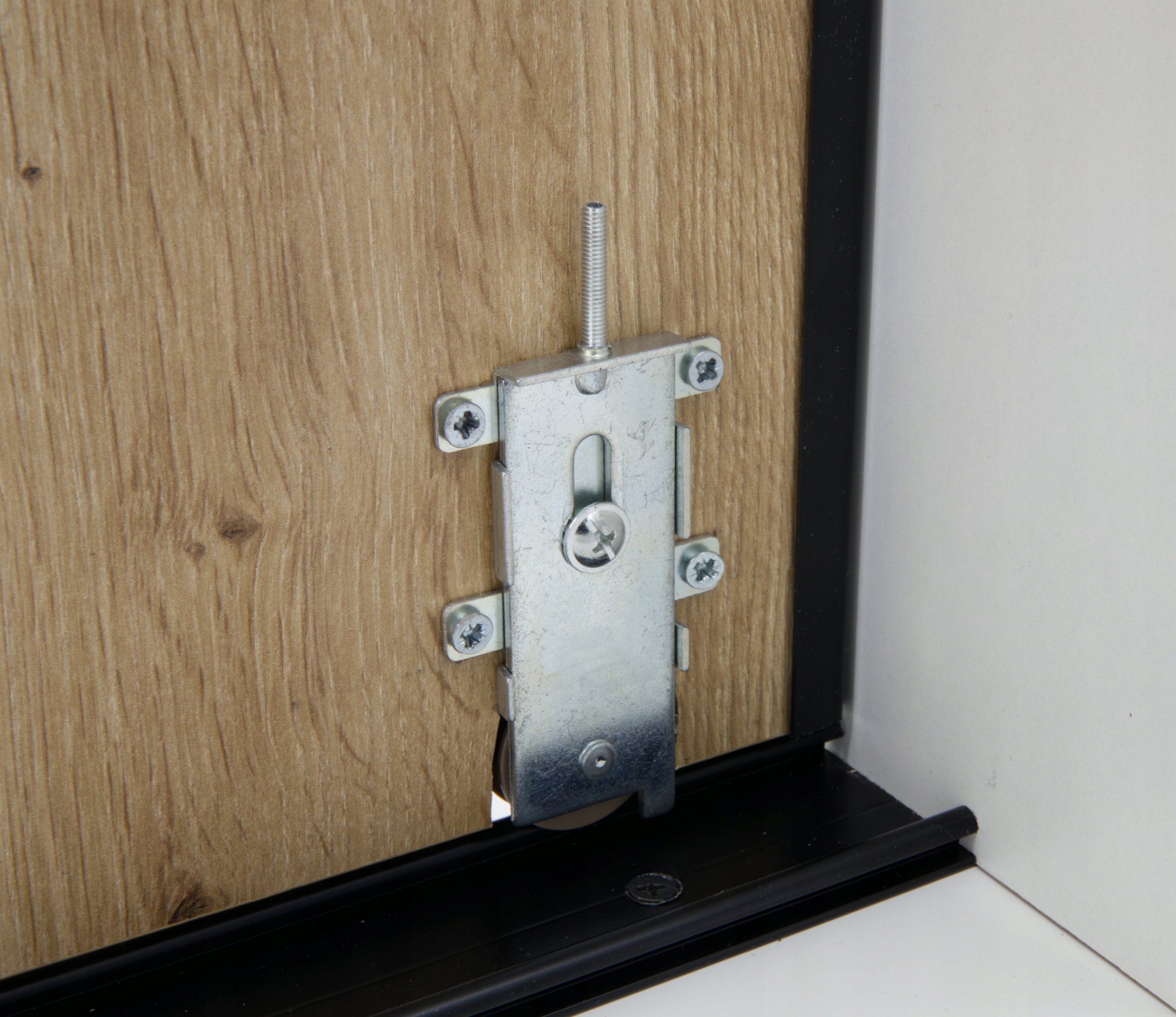 Przedmiotem aukcji jest system przesuwny do szafy dwuskrzydłowej szerokości do 180cm w kolorze czarnym z rączkami (profile pionowe)