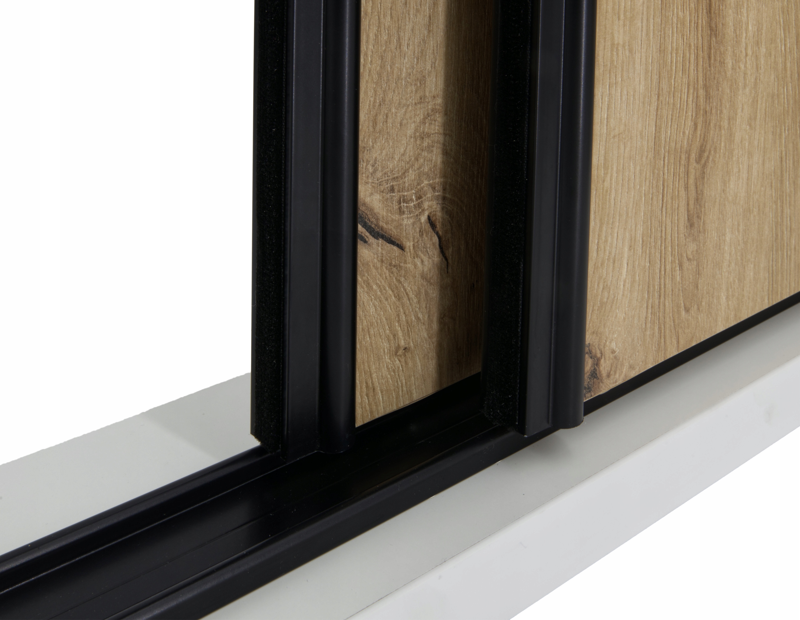 Przedmiotem aukcji jest system przesuwny do szafy trzyskrzydłowej szerokości do 200cm w kolorze czarnym z rączkami (profile pionowe)