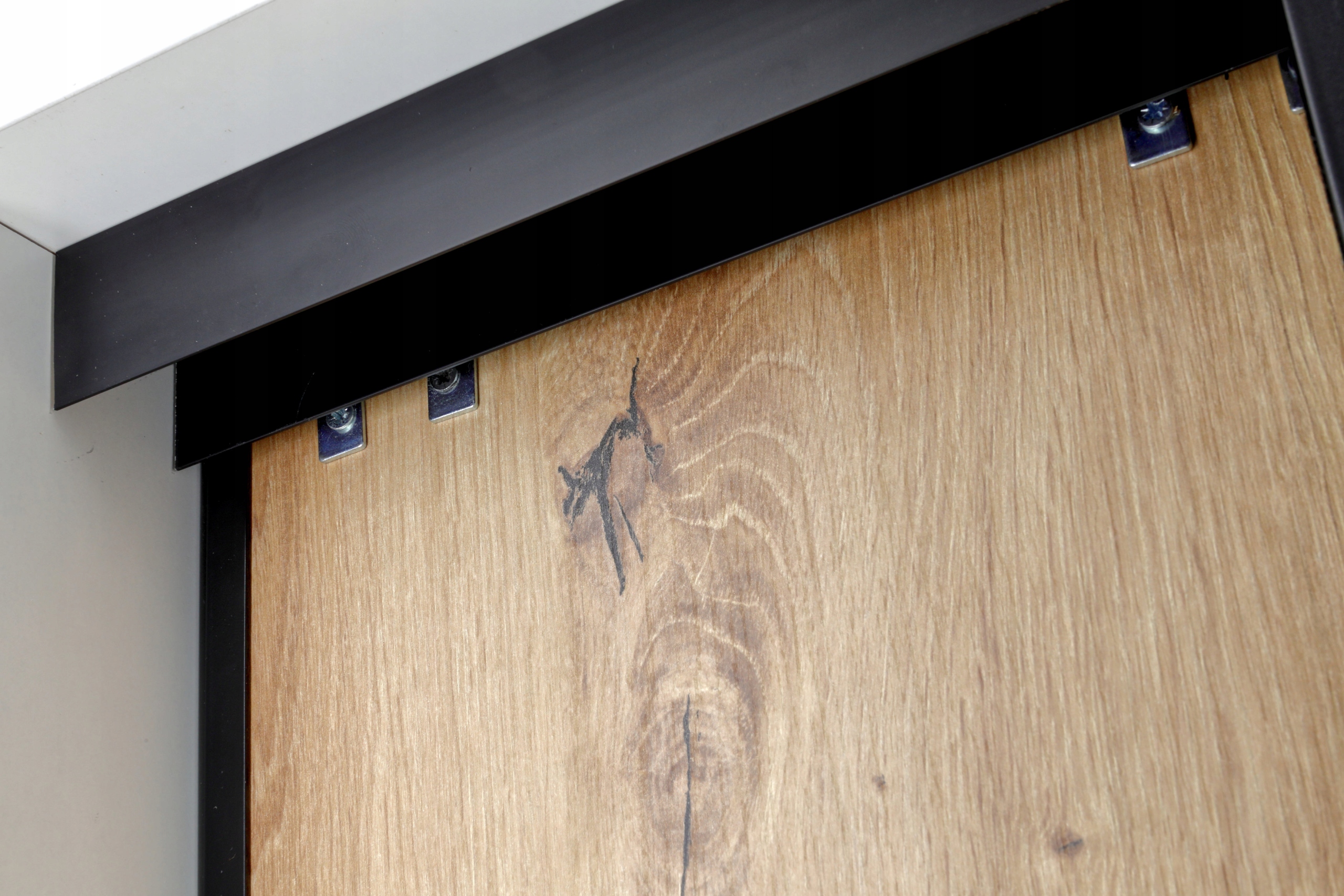 Przedmiotem aukcji jest system przesuwny do szafy dwuskrzydłowej szerokości do 150cm w kolorze czarnym z rączkami (profile pionowe)