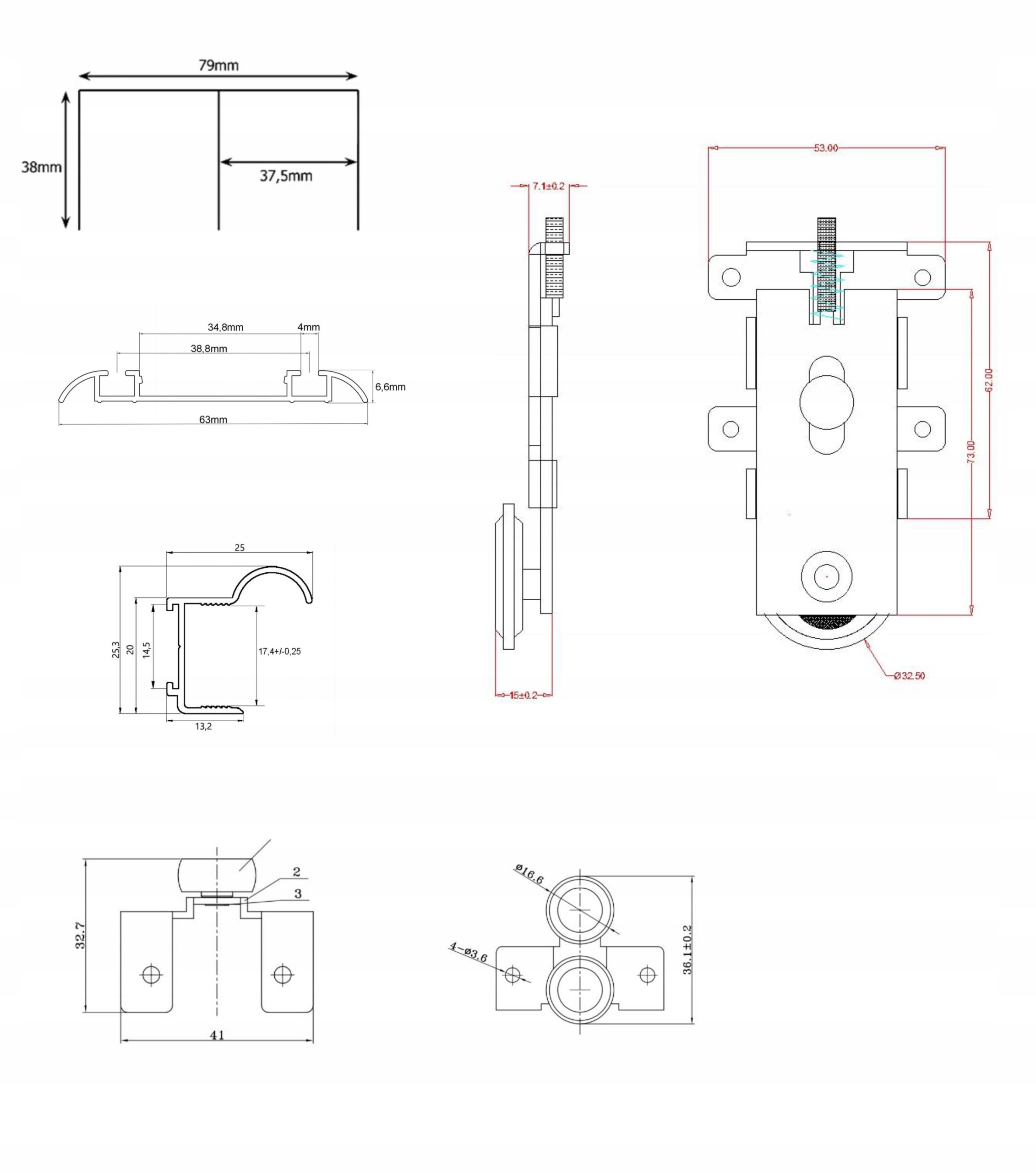 - kpl. okuć dodatkowego skrzydła ( wózki rączki kątownik szczotka, klips zabezpieczający, stoper)