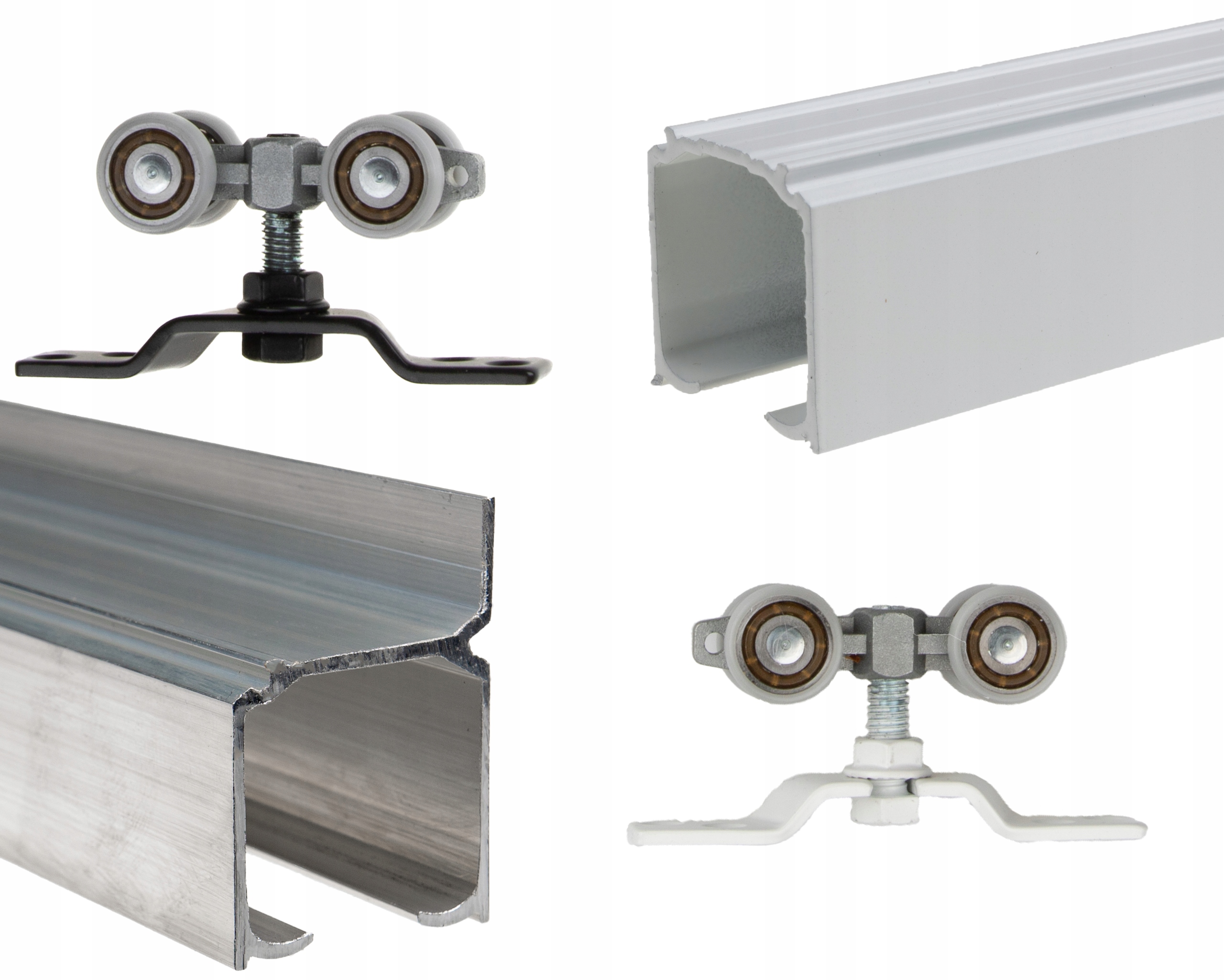 W zestawie z wózkami standardowymi bez domykaczy w wariancie z szyną mocowaną do sufitu jak i do ściany.