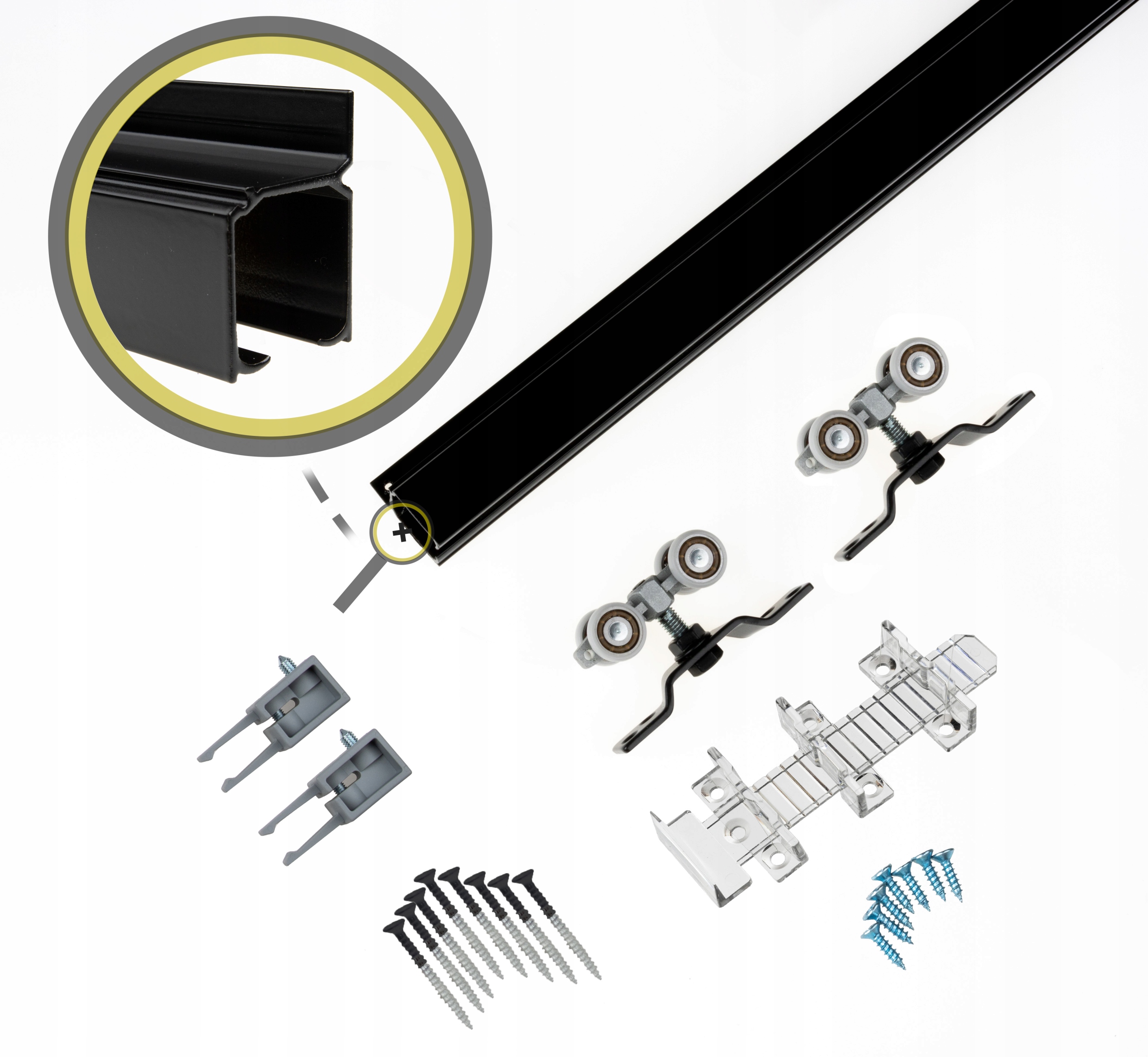 - prowadnica aluminiowa ścienna 300cm lakierowana proszkowo RAL 9005 mat – 2szt