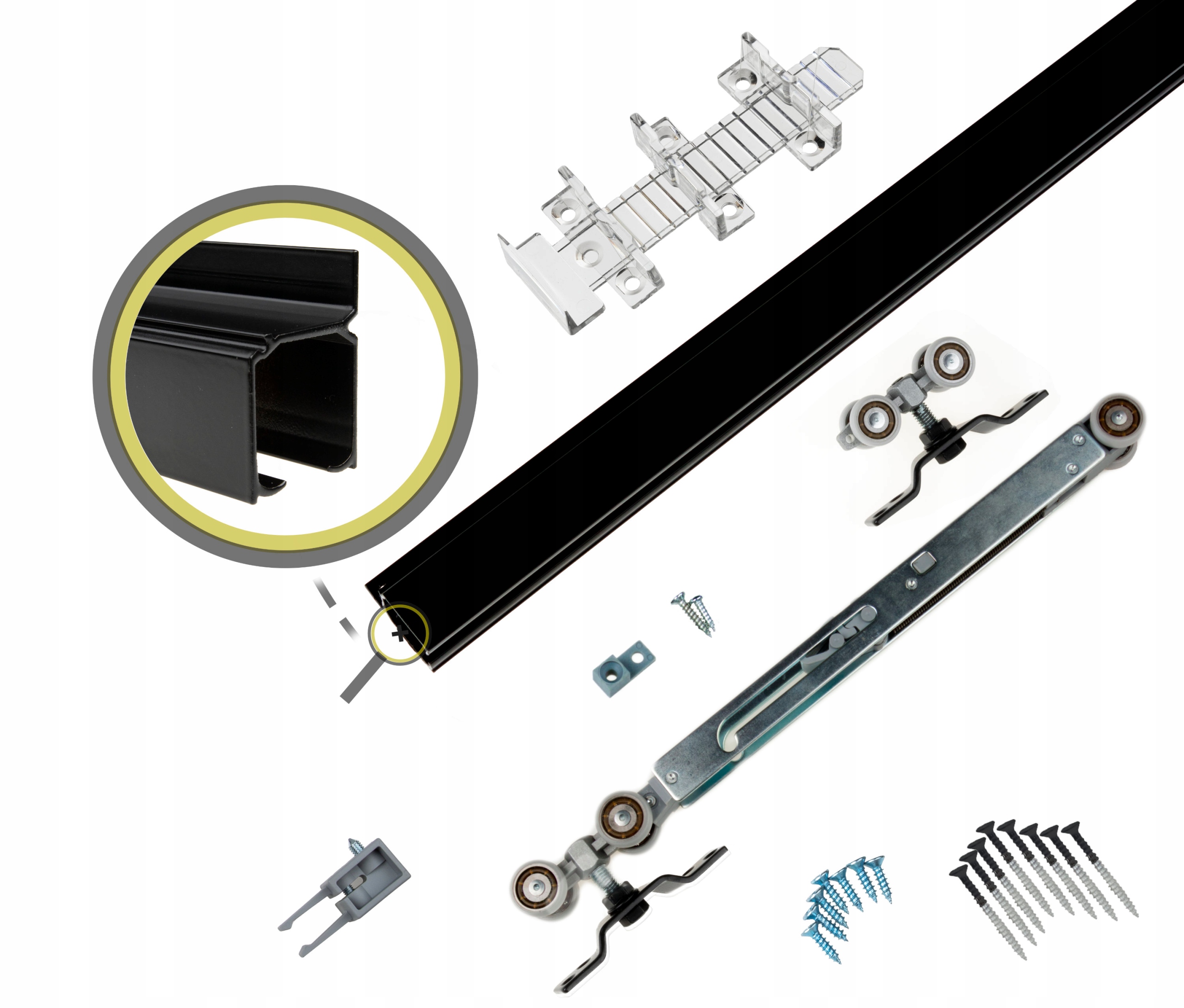 - prowadnica aluminiowa ścienna 200cm lakierowana proszkowo RAL 9005 mat – 1szt