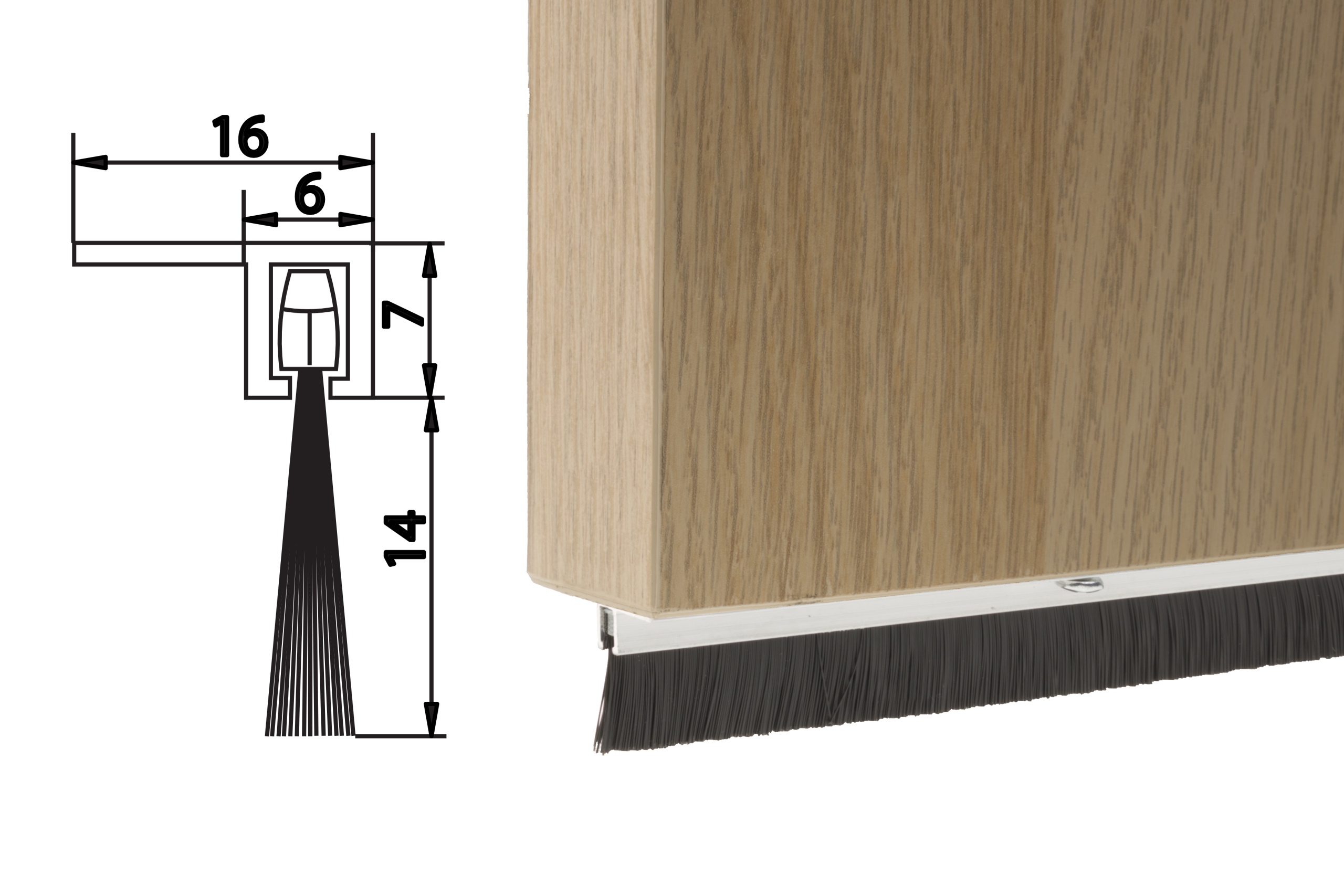 Szczotka drzwiowa uszczelniająca w prowadnicy aluminiowej kątowej