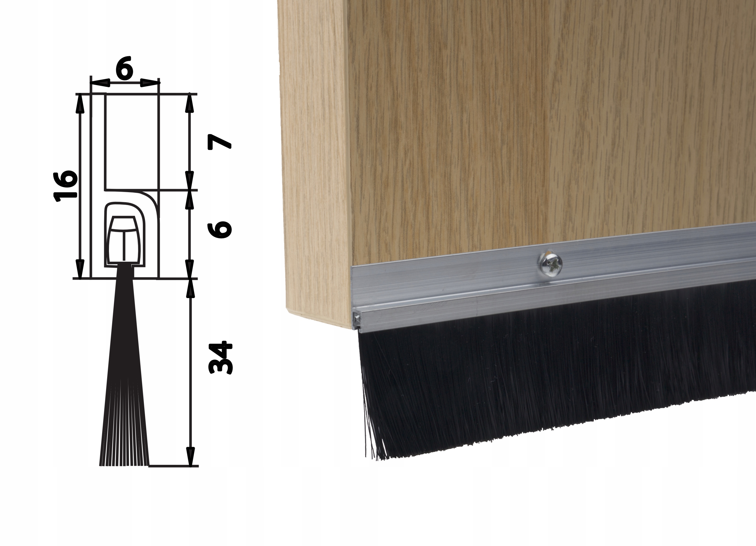 Szczotka drzwiowa uszczelniająca w prowadnicy aluminiowej prostej
