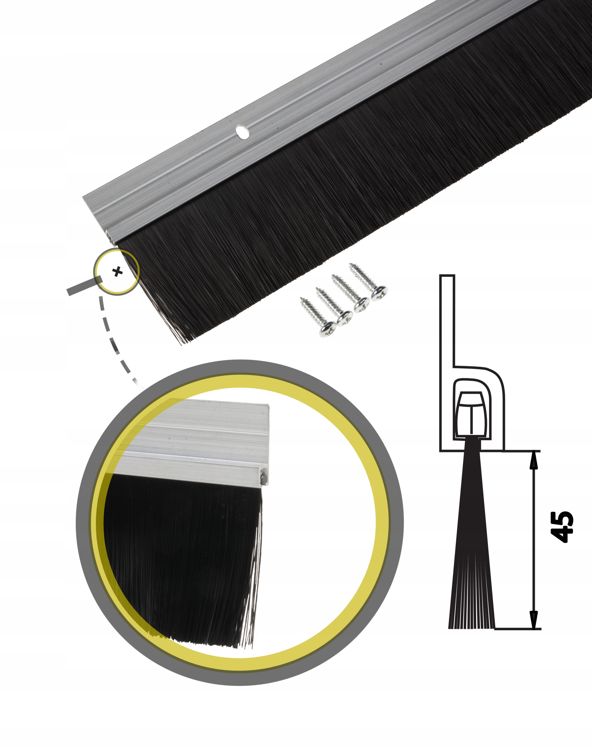 Szczotka ogranicza dostęp powietrza, kurzu, owadów, hałasu, światła zapachów do wnętrza pomieszczenia.