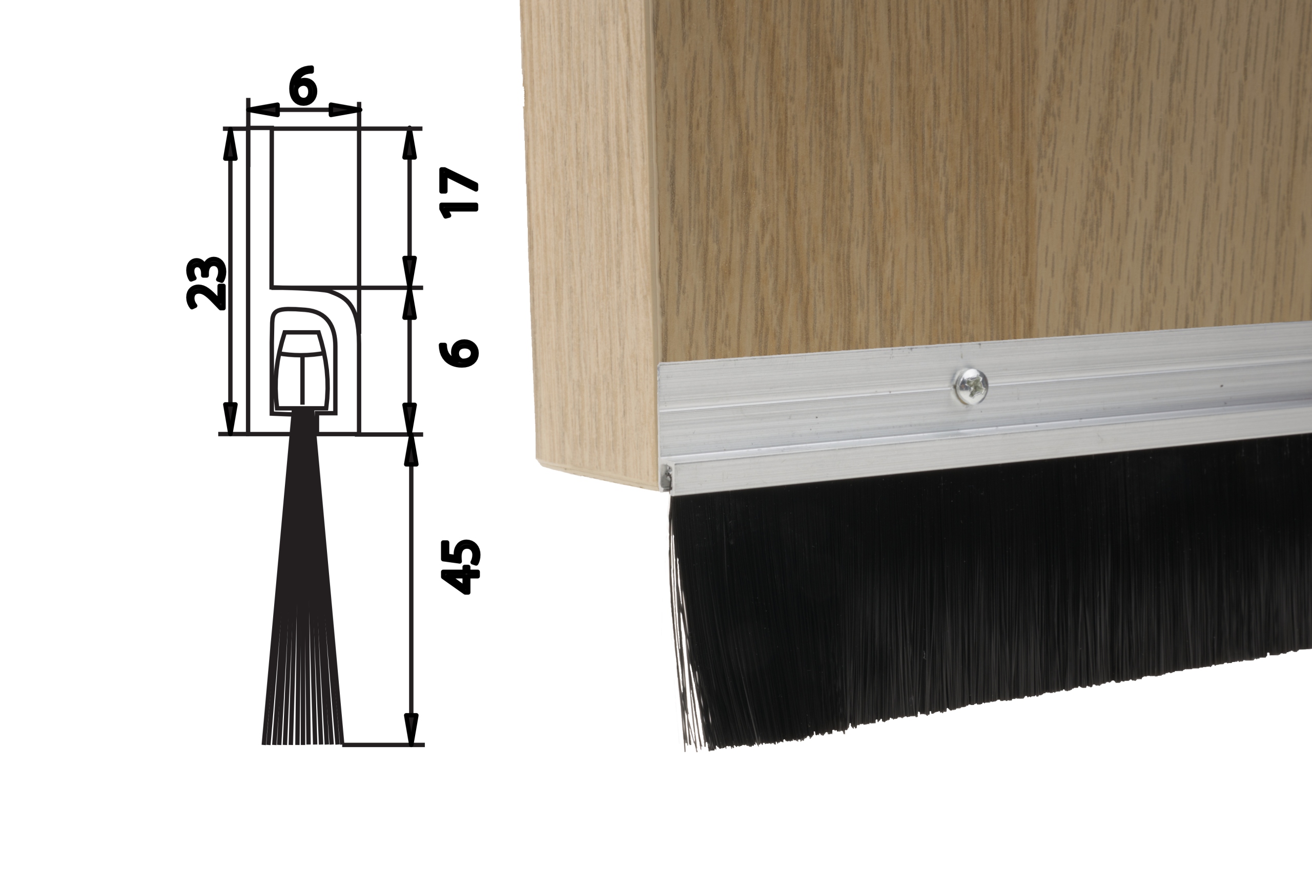 Szczotka drzwiowa uszczelniająca w prowadnicy aluminiowej prostej