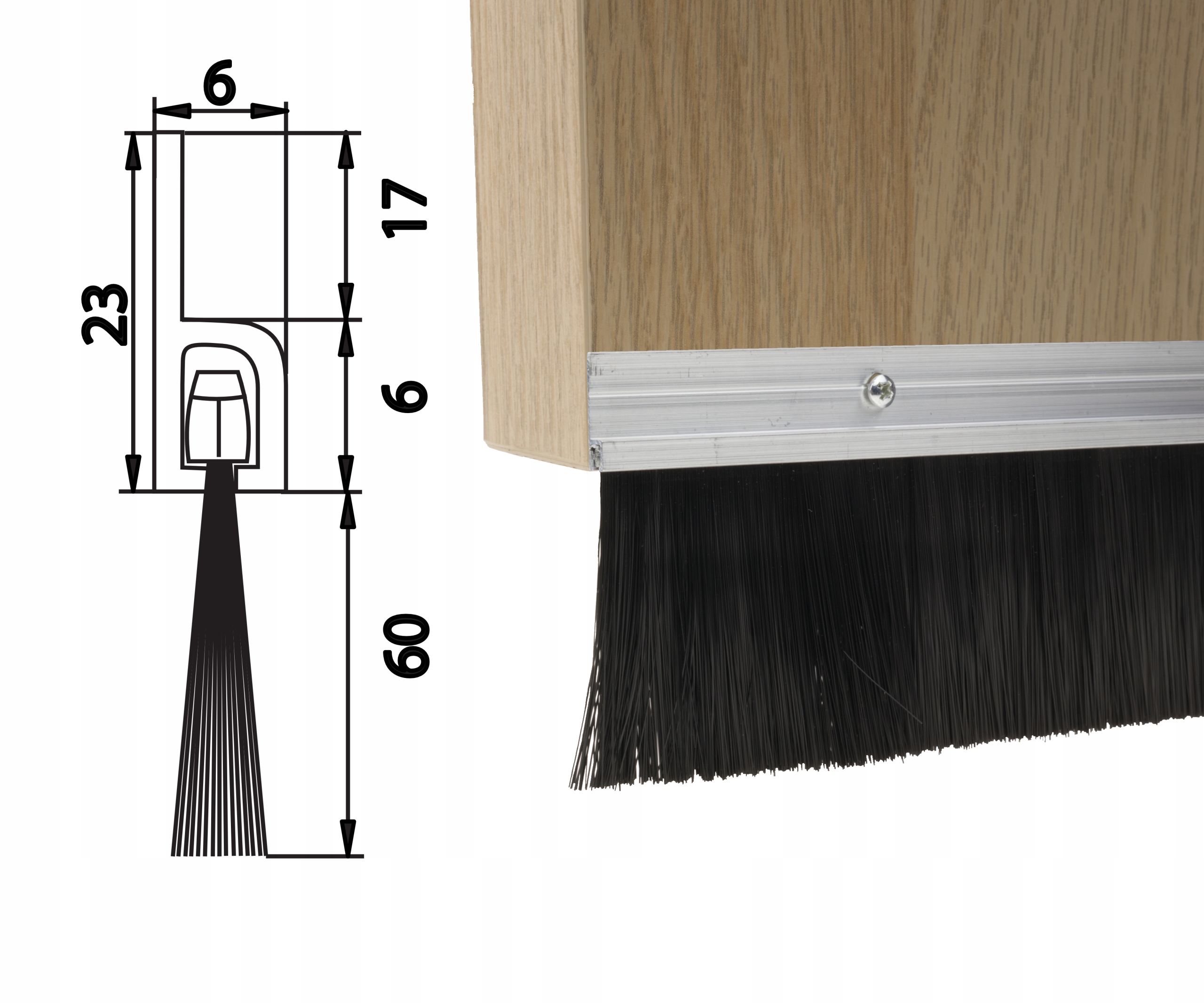 Szczotka drzwiowa uszczelniająca w prowadnicy aluminiowej prostej