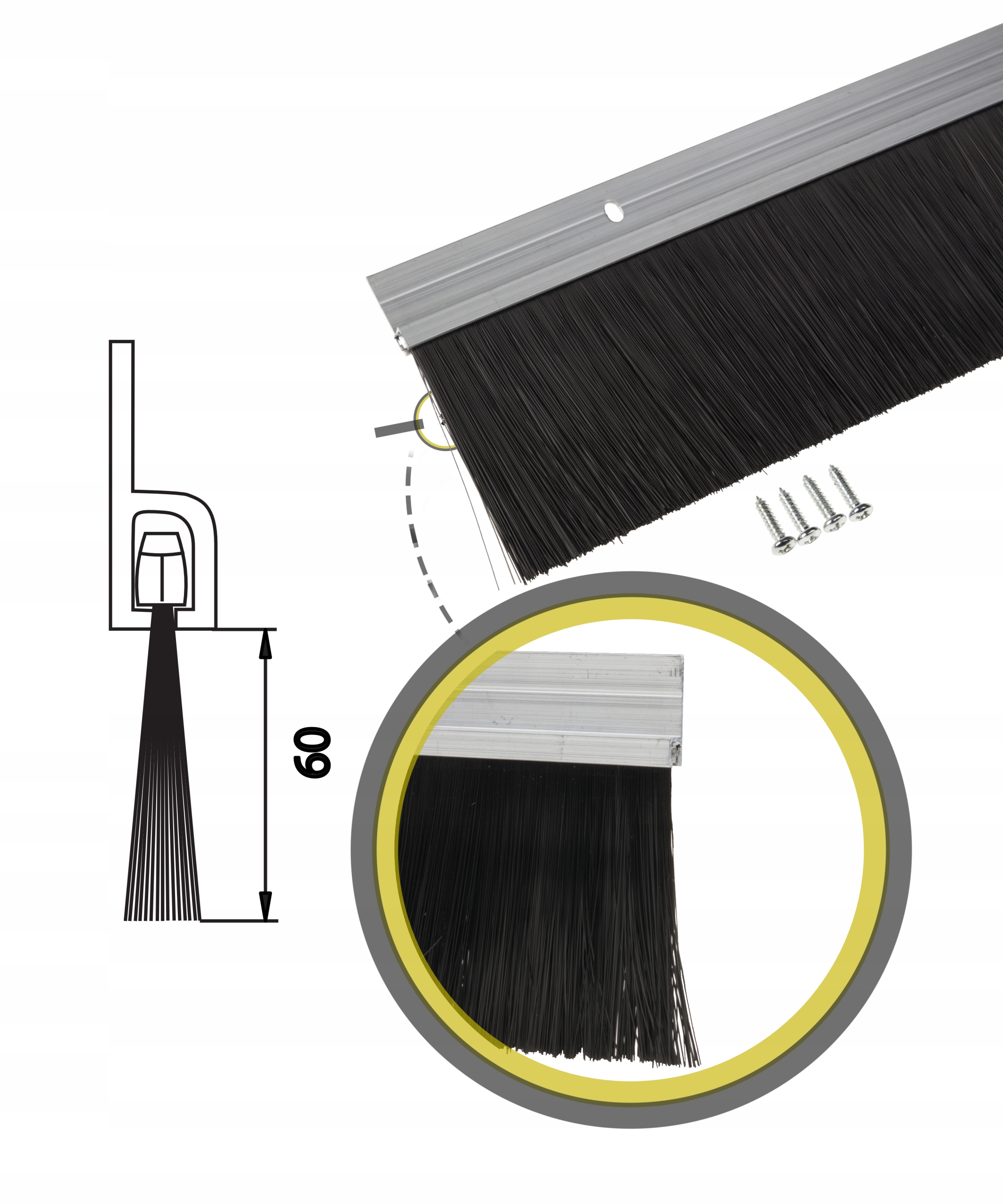 Szczotka ogranicza dostęp powietrza, kurzu, owadów, hałasu, światła zapachów do wnętrza pomieszczenia.