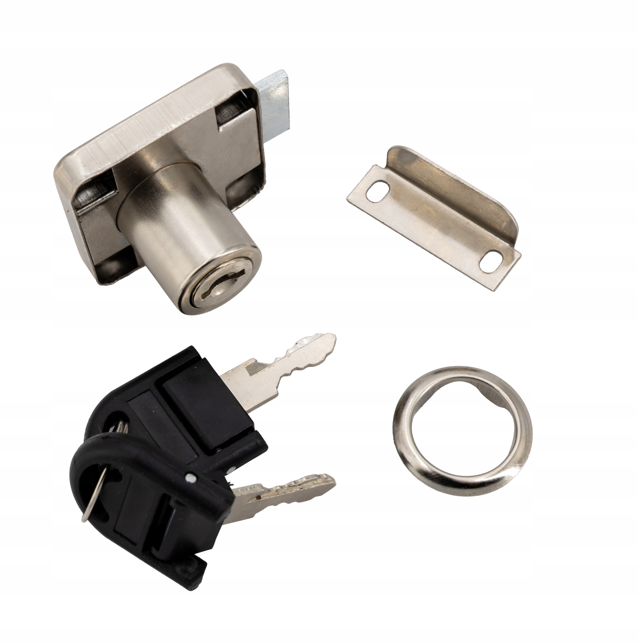 Przedmiotem oferty jest zamek meblowy kwadratowy w kolorze srebrnym