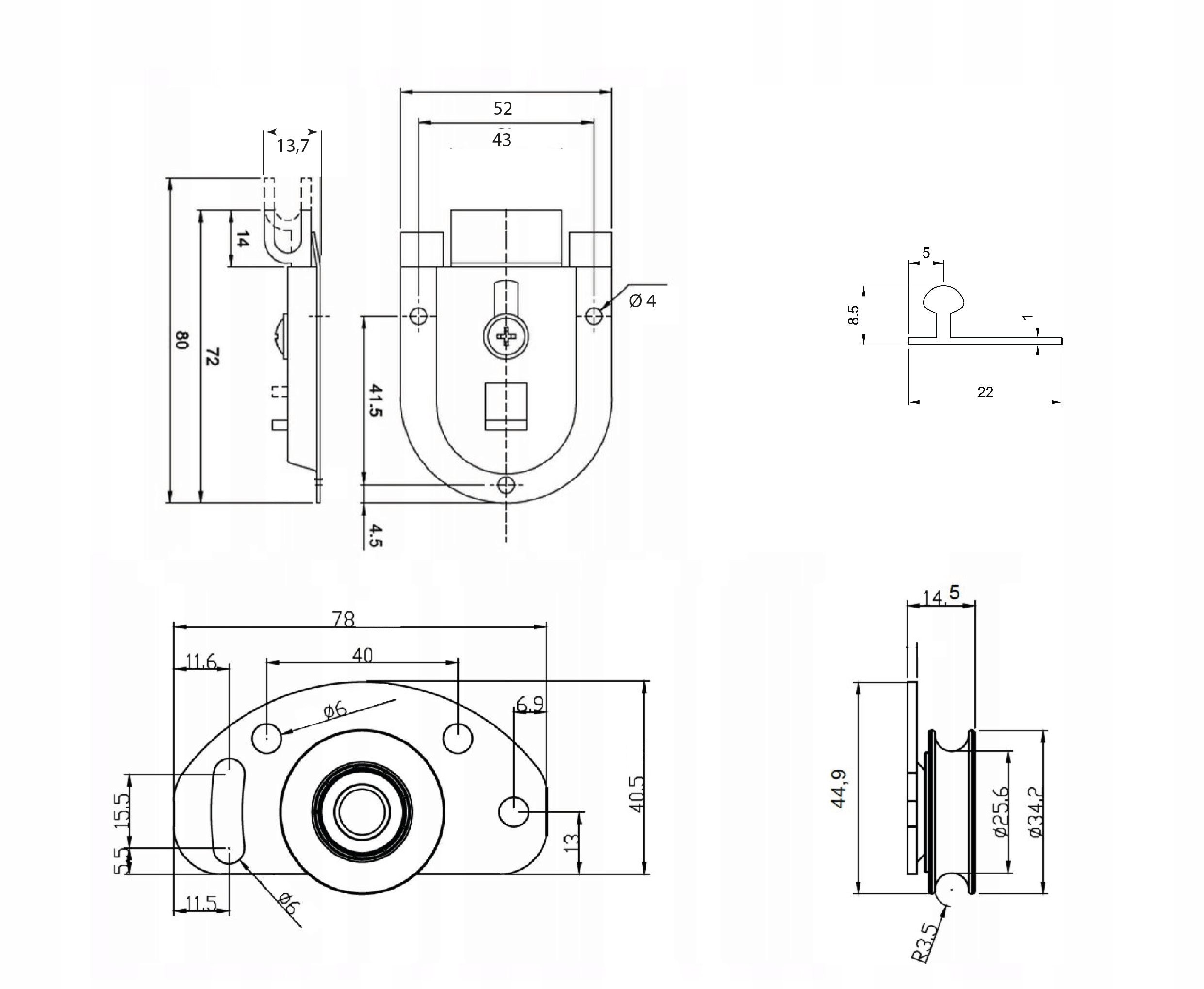 Cechują go łożyskowane wózki dolne, górne prowadniki ślizgowe oraz separowane tory które zapewniają możliwość zastosowania dowolnej grubości materiału na skrzydło drzwiowe.