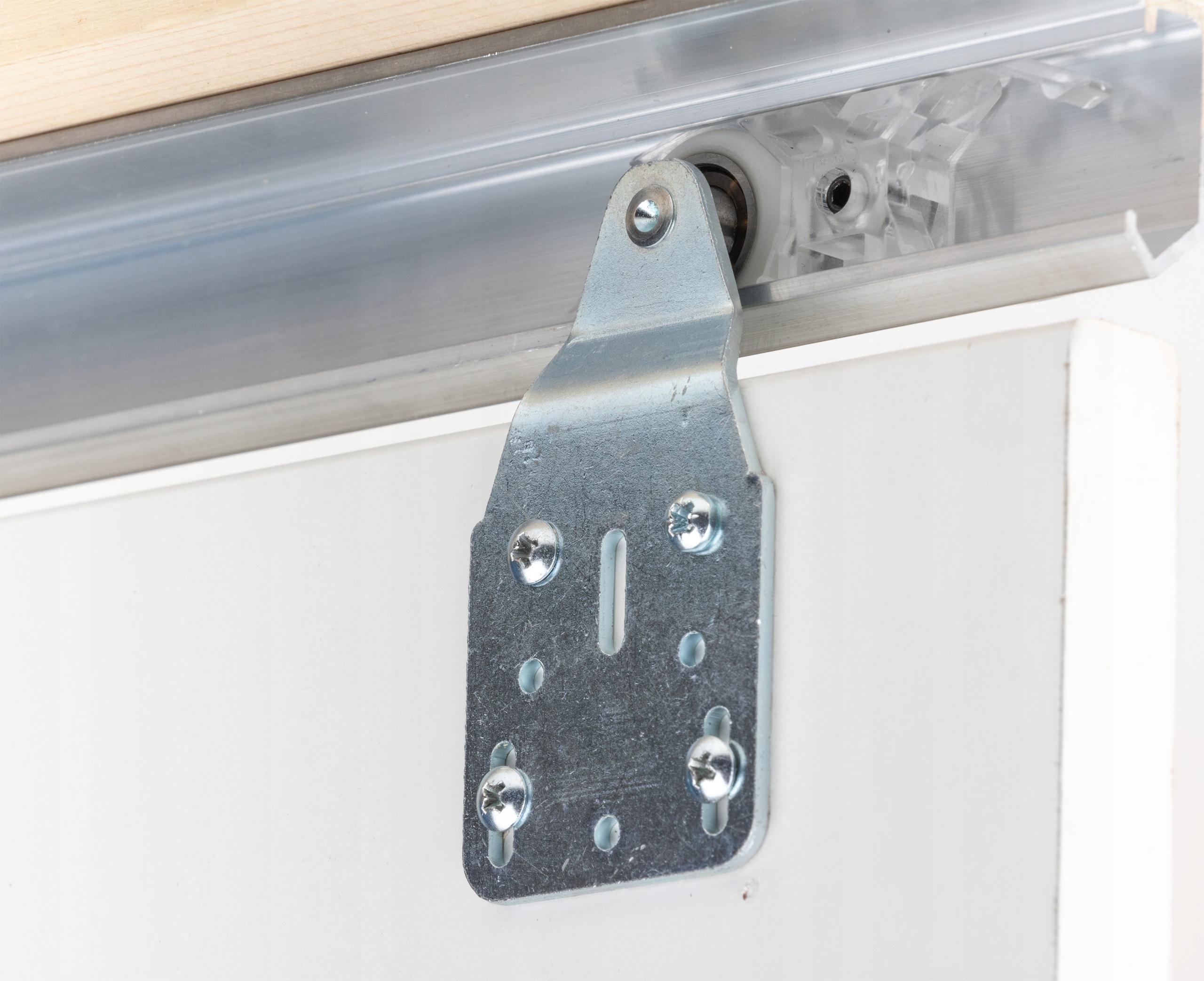 System charakteryzuje się wózkami mocowanymi do płaszczyzny bocznej skrzydła dzięki czemu doskonale nadaje się do drzwi wykonanych z płyty meblowej 18mm. Tego typu rozwiązanie uwalnia od wszystkich ograniczeń rozmiarowych klasycznego skrzydła drzwiowego, zarówno w zakresie jego szerokości jaki i wysokości.