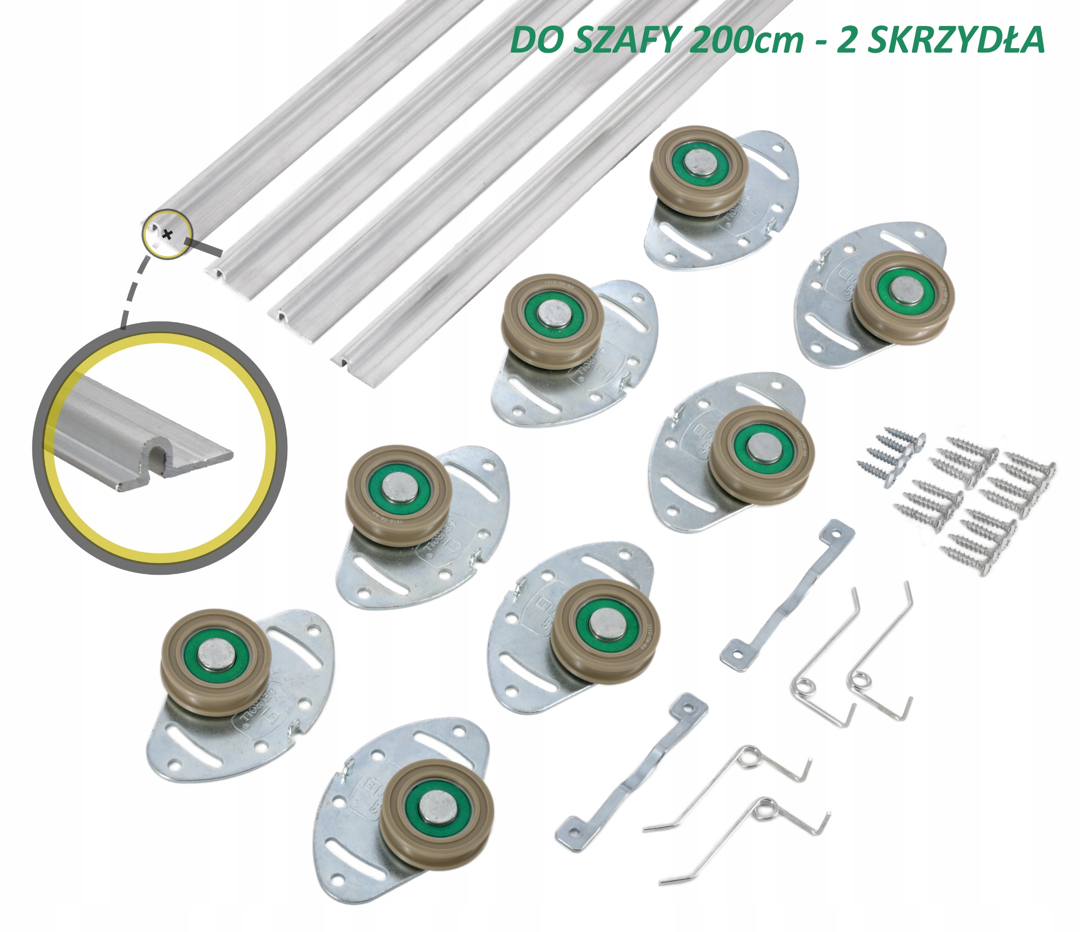 Kompletny Zestaw wózków i prowadnic do szafy przesuwnej dwuskrzydłowej o szerokości do 2000mm