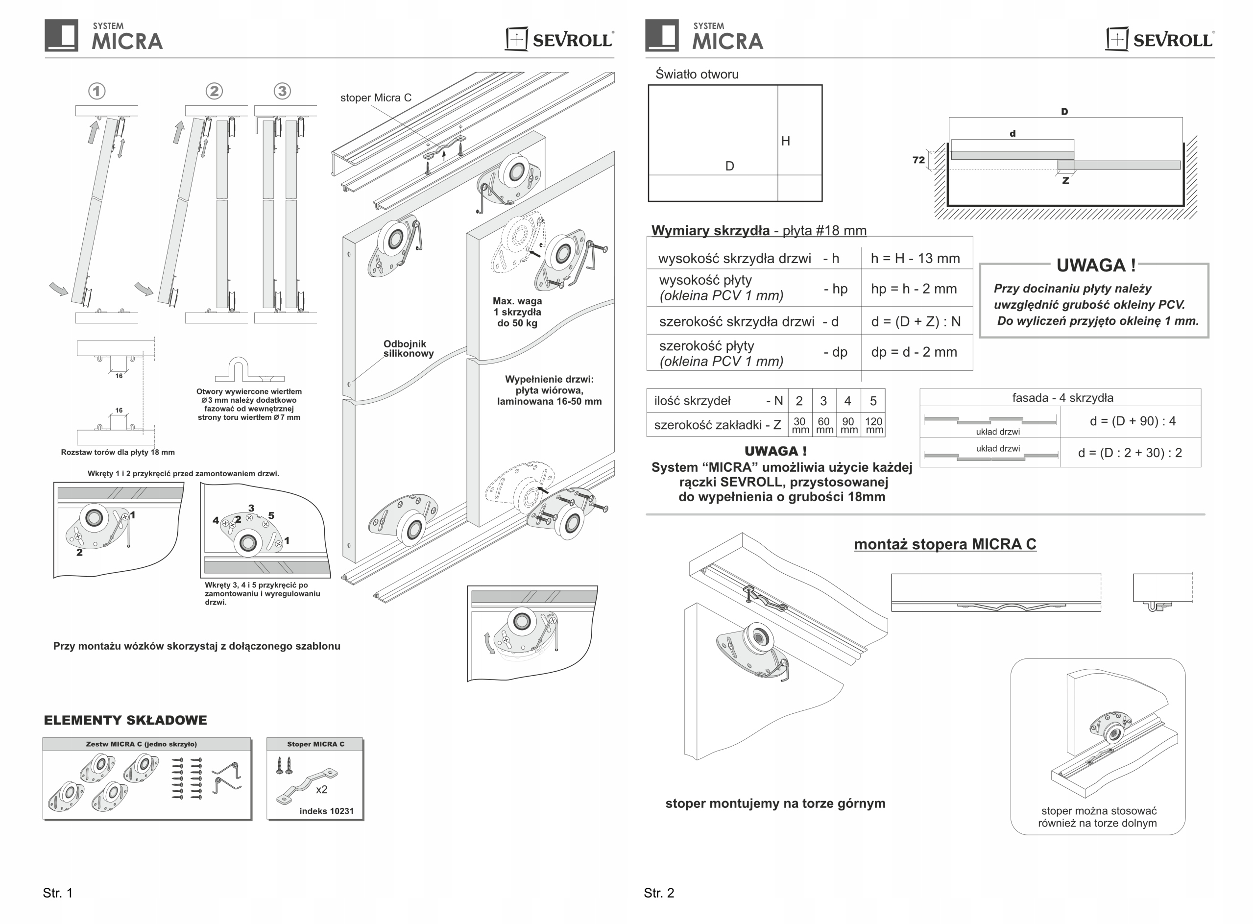 - kpl. wkrętów mocujących wózki do skrzydła – 2kpl.